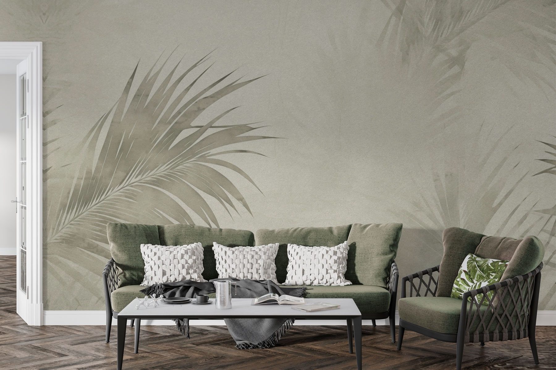 Transform your space into a serene tropical getaway with this stunning mural of soft palm leaves. Set against a gentle, neutral backdrop, it whispers relaxation while effortlessly blending in with any decor. Imagine curling up on a rainy afternoon, the lush leaves creating a cozy vibe that instantly lifts the spirits. It’s like bringing a little slice of paradise indoors—without the sunburn. Perfect for a living room or bedroom, this mural invites the essence of nature right into the heart of your home. Dive into this leafy haven and watch your walls come alive!