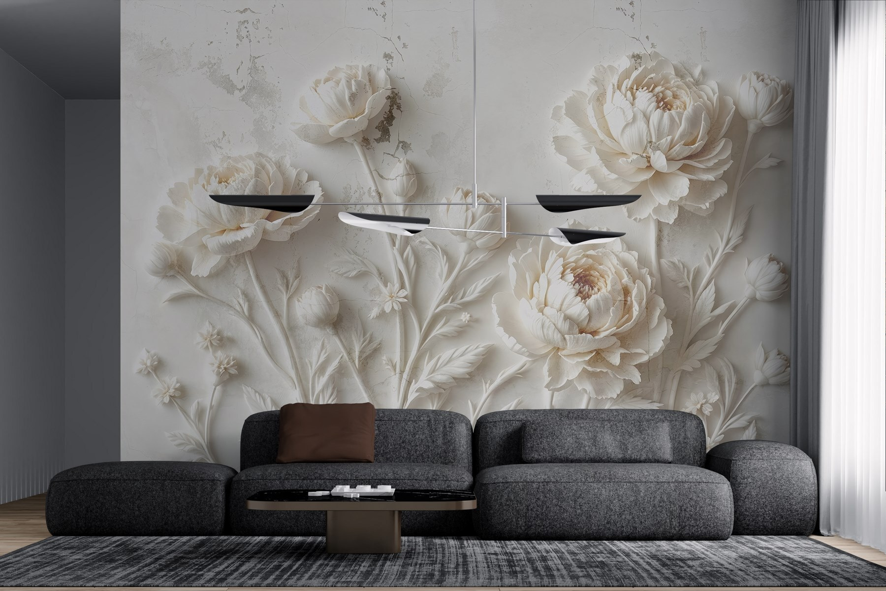 Transform any space into a tranquil escape with this stunning wall mural featuring delicate white flowers in a carved design. Imagine stepping into a serene garden every time you’re home. The soft, detailed petals almost whisper secrets of springtime, creating a calming ambiance that just says “relax.” Whether it’s in a cozy nook, a chic living area, or even your office, this mural brings a classic touch that makes walls sing. It could even spark a conversation or two—who knew wall art could be such a charming host? Perfect for those who adore nature without the fuss of a green thumb.