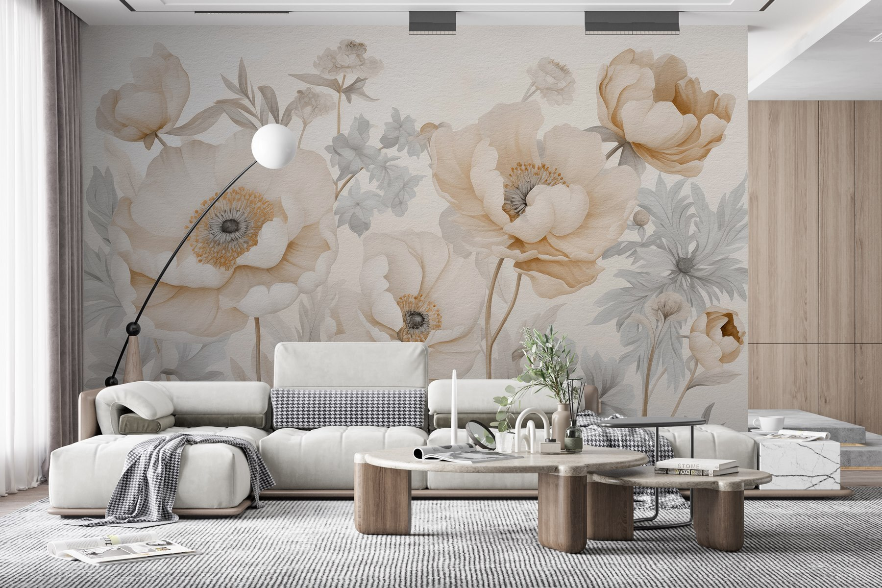 Imagine stepping into a dreamy garden with this mural, “Delicate blooms in soft hues.” Its gentle colors whisper of spring, bringing a fresh vibe to any room. Picture it in a cozy nook, making mornings feel a bit brighter or adding a touch of charm to a bedroom. Friends might even comment on how the space feels more inviting. The beauty of these flowers lies in their simplicity—no fuss, just pure elegance. It’s the kind of piece that makes you want to sip tea and chat for hours, surrounded by nature’s soft embrace, bringing a little serenity to everyday life.