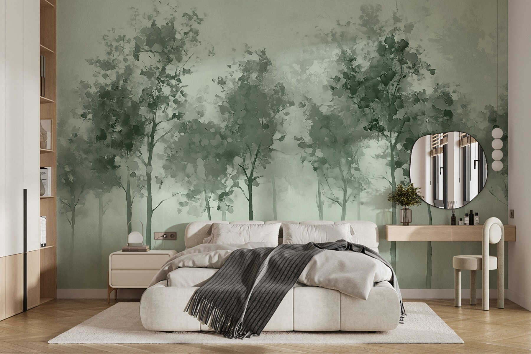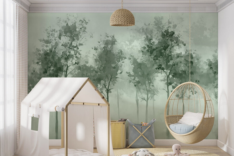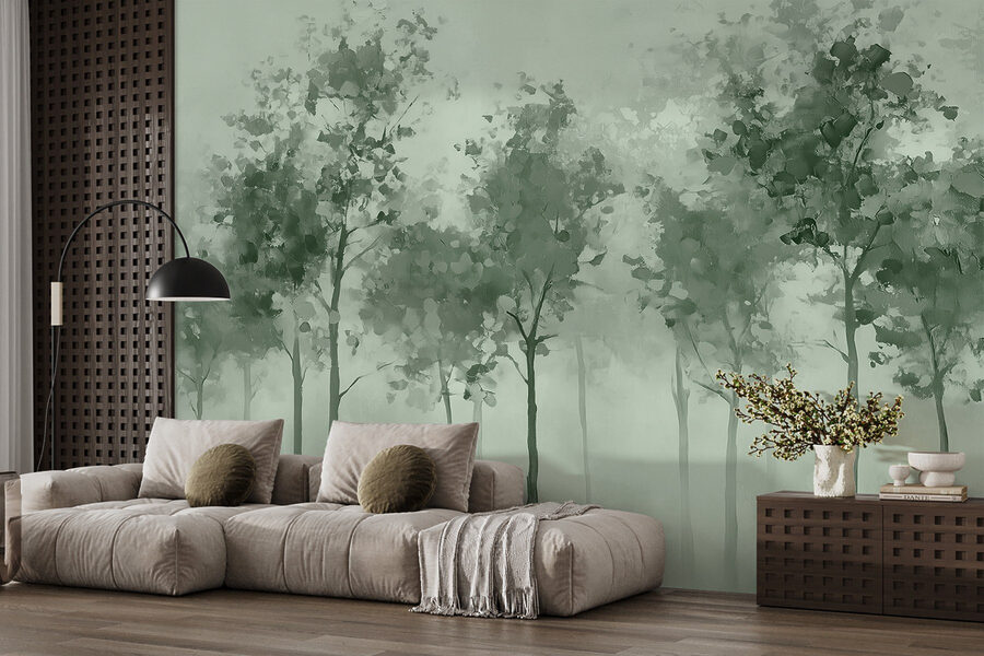 Step into a dreamlike forest with this enchanting mural, featuring a group of trees standing proudly in a gentle fog. It’s like nature’s own watercolor painting, a soft embrace of green hues that invites calm and wonder. Imagine relaxing with a warm cup of tea, staring at this serene scene, and feeling the hustle and bustle of the day melt away. Perfect for living rooms or cozy nooks, it brings a slice of tranquility indoors. Whether you’re daydreaming of hikes in the woods or just want to jazz up your space, this mural has a knack for sparking inspiration. Seriously, who wouldn’t want a mini-forest on their wall?