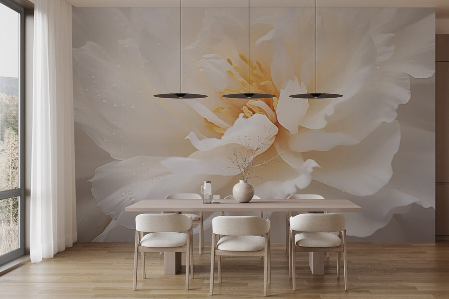 Transform any room with the enchanting wall mural featuring delicate petals adorned with gentle dew drops. It’s like bringing a garden inside without all the watering and weeding! Imagine waking up to this stunning view—those soft colors and intricate details will surely brighten anyone’s day. Perfect above a cozy reading nook or as a serene backdrop in the bedroom, this mural blends artistry with a touch of nature. Friends will admire it, and you might just find yourself staring at it when you need a moment of calm. A little piece of floral magic—who wouldn’t want that?
