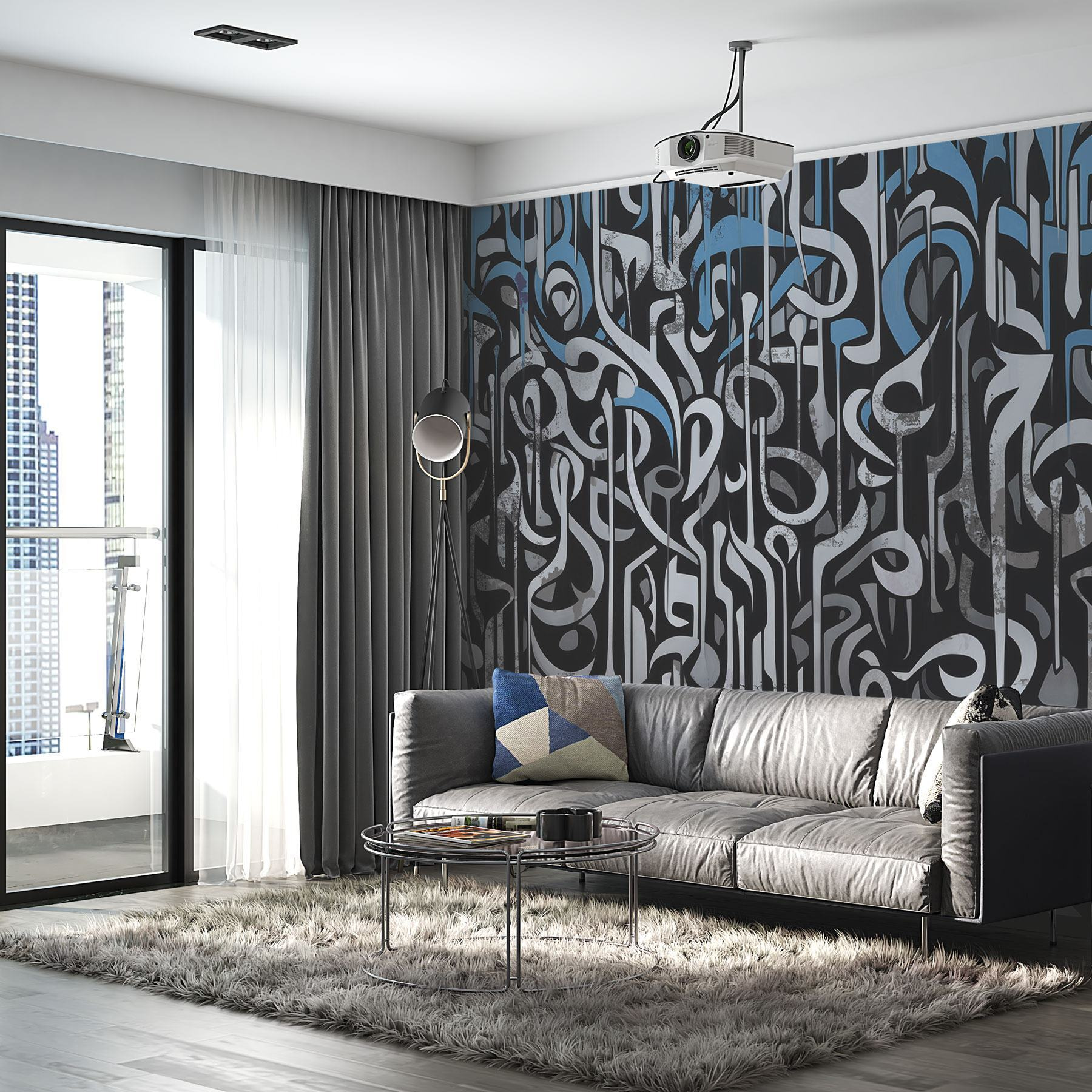 Transform any space with this striking wall mural boasting black and white art intertwined with vibrant blue lines. It’s like a dance of shapes and colors that can spark a conversation or just make one pause and admire. Imagine relaxing in a cozy corner or hosting friends, and everyone’s eyes are drawn to this piece. It brings a modern vibe that feels both edgy and comforting. The playful patterns invite curiosity, and there’s just something about the swirling lines that makes the room feel alive. Perfect for those who love unique decor and want to make a style statement without saying a word. Let this mural do the talking!