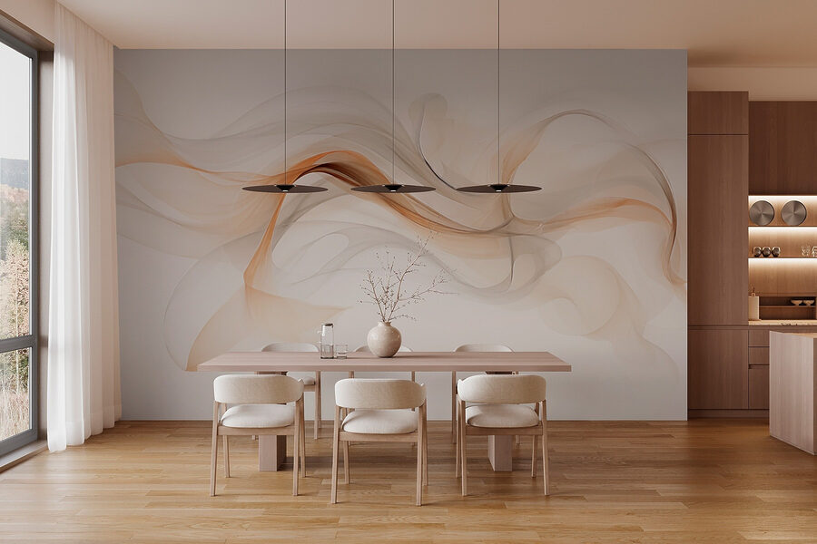 Imagine walking into a room and being greeted by a soft dance of white and brown smoke, swirling like a gentle embrace. This mural isn’t just wall decor; it’s a mood setter. Those flowing lines create a serene vibe that instantly calms the senses, like a cozy blanket on a chilly day. It whispers elegance without shouting, making it perfect for any space—living room, bedroom, or even an office for a bit of zen. Grab a cup of tea, sit back, and let this mural transform your walls into a canvas of tranquility. Who knew smoke could be so inviting?