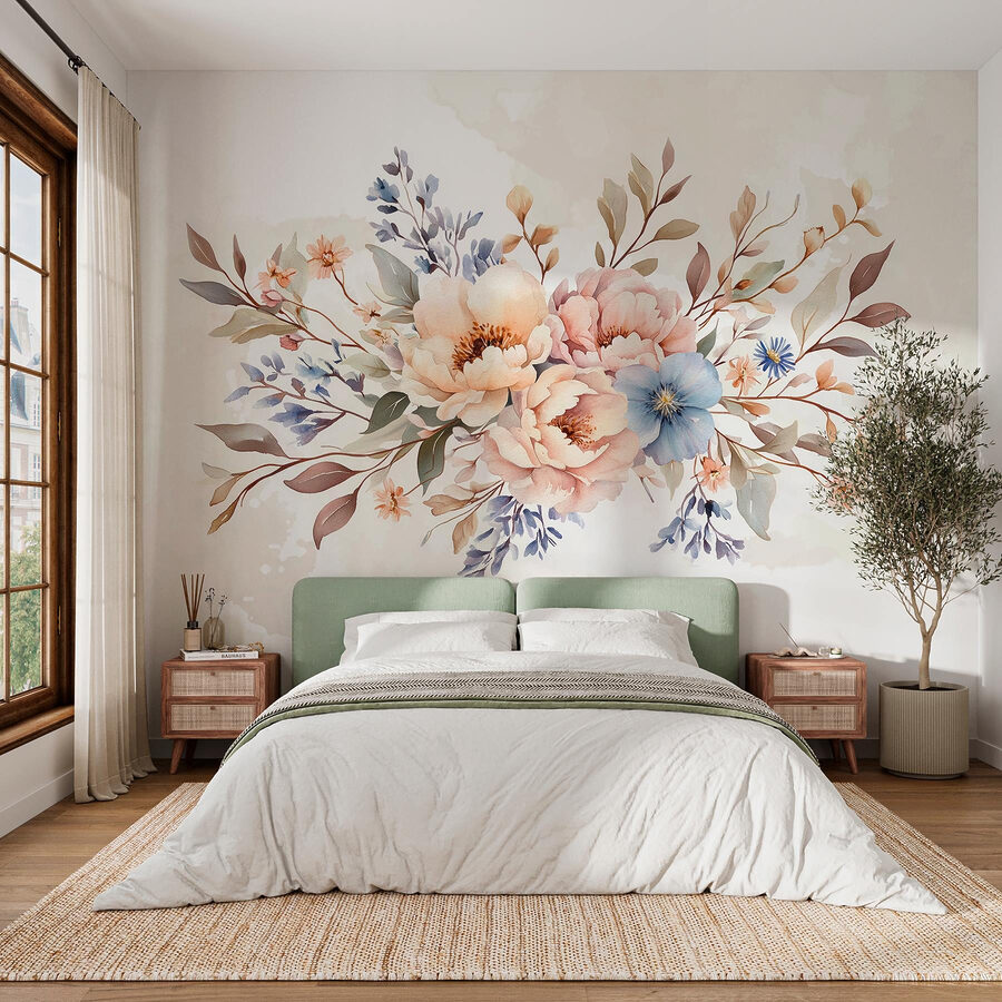 Brighten up any space with this enchanting wall mural featuring a bouquet of flowers on a soft white background. It’s like having a little garden in your home without the need for watering or pesky bees. The peonies and dainty blossoms practically invite daydreams or quiet moments with a cup of tea. Imagine stepping into your room and feeling that instant cheer from the vibrant colors, like springtime even in midwinter. Perfect for a cozy corner or a statement wall, this mural effortlessly brings warmth and charm, making any room feel just a bit more magical.