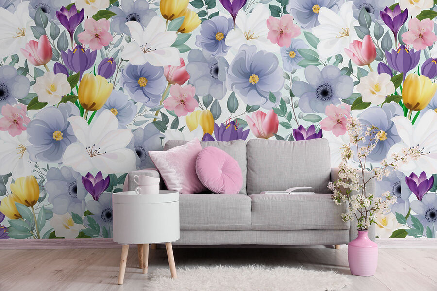 Brighten up your space with this stunning mural featuring a lively bouquet of flowers and leaves that feels like a breath of fresh air. Imagine walking into a room that instantly feels more cheerful, like spring has just burst through the door. The soft colors and delicate blooms create a cozy vibe, perfect for that reading nook or even a playful kid’s room. It’s like your walls just had a mini garden party. Plus, who wouldn’t want to wake up to lovely blooms every day? Just picture any guest going, “Wow, where did you find that?” It’s a fun way to bring life indoors.