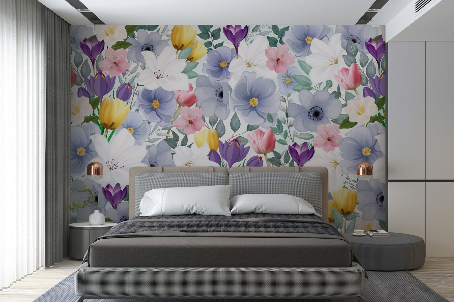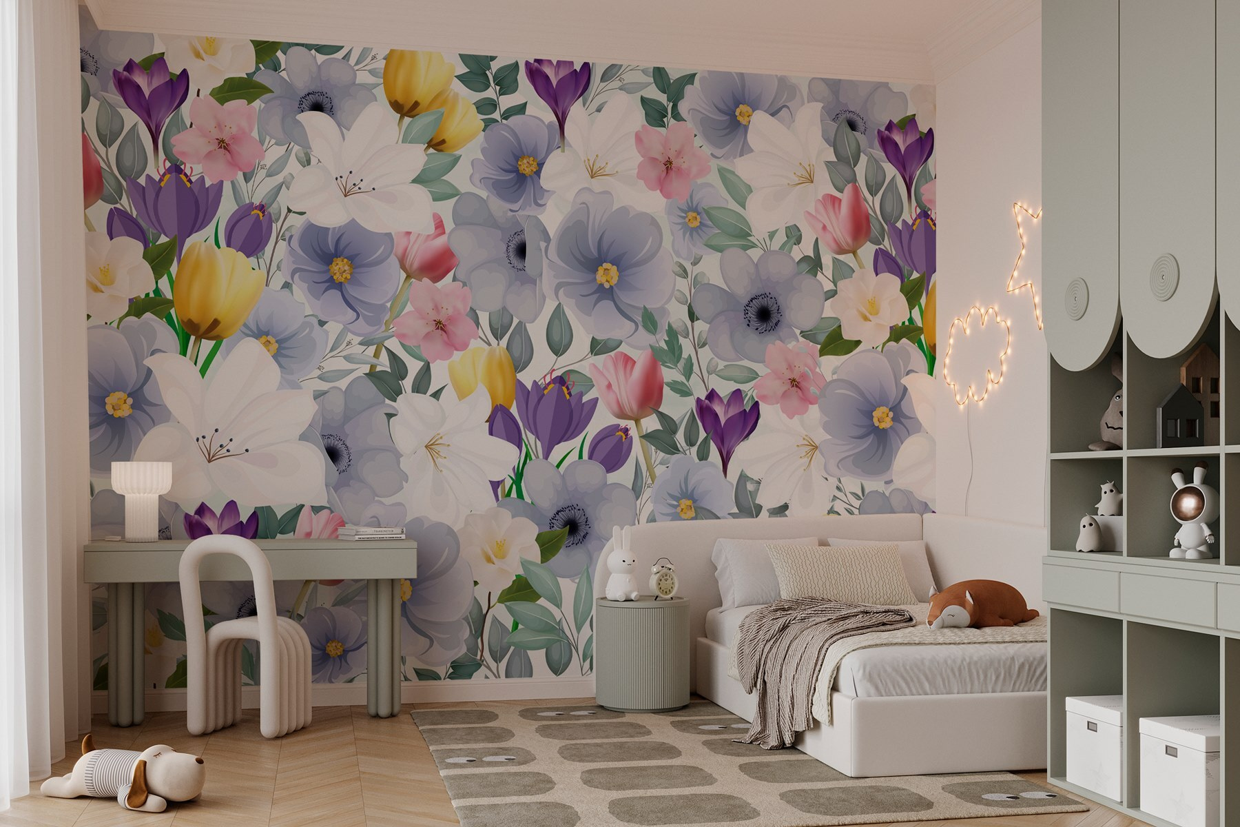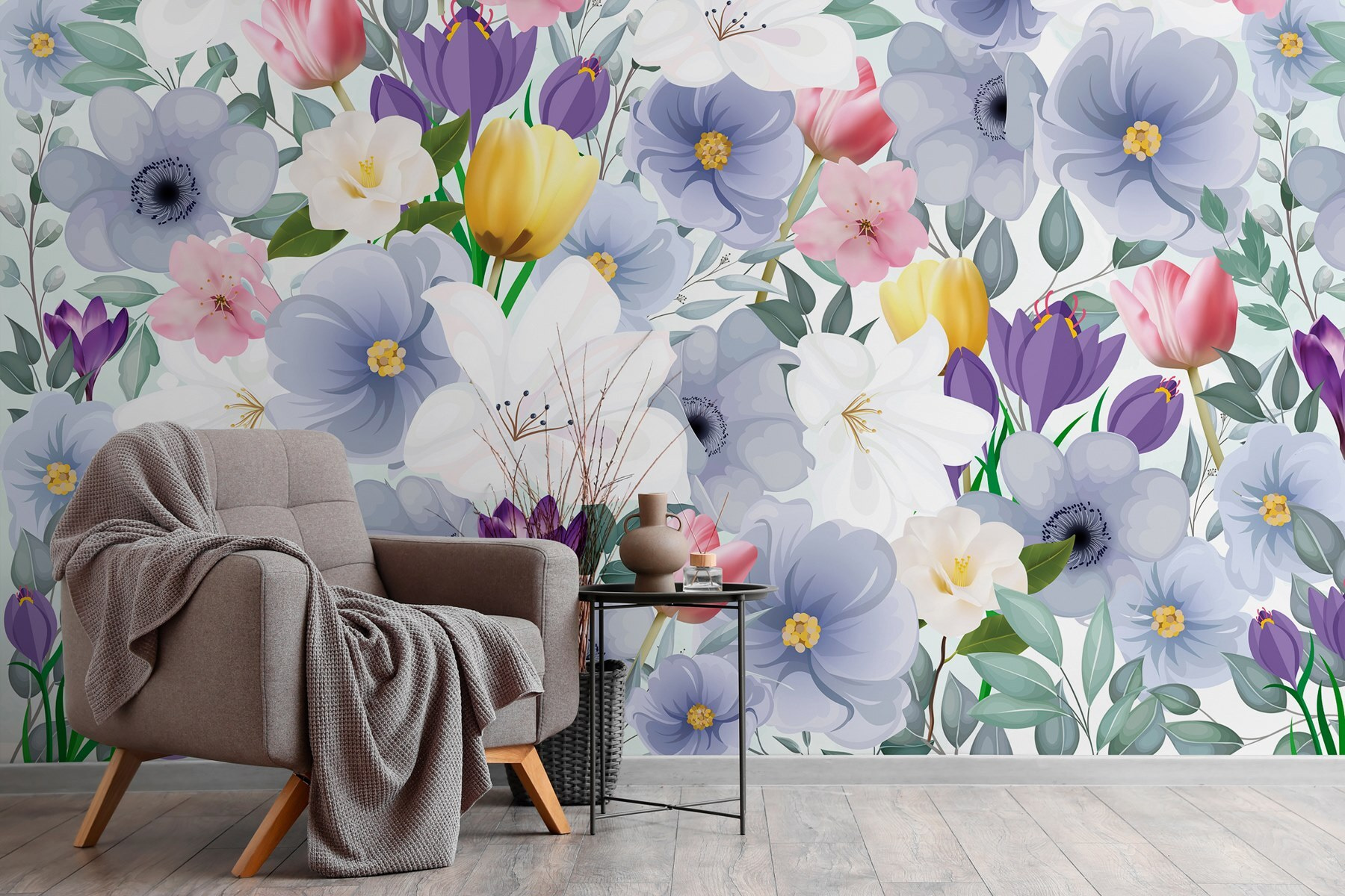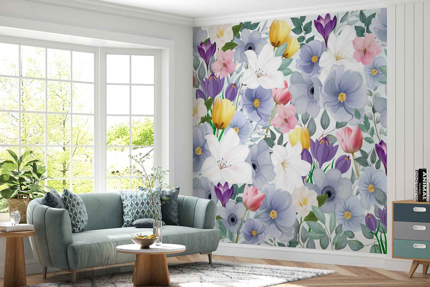 Brighten up your space with this stunning mural featuring a lively bouquet of flowers and leaves that feels like a breath of fresh air. Imagine walking into a room that instantly feels more cheerful, like spring has just burst through the door. The soft colors and delicate blooms create a cozy vibe, perfect for that reading nook or even a playful kid’s room. It’s like your walls just had a mini garden party. Plus, who wouldn’t want to wake up to lovely blooms every day? Just picture any guest going, “Wow, where did you find that?” It’s a fun way to bring life indoors.