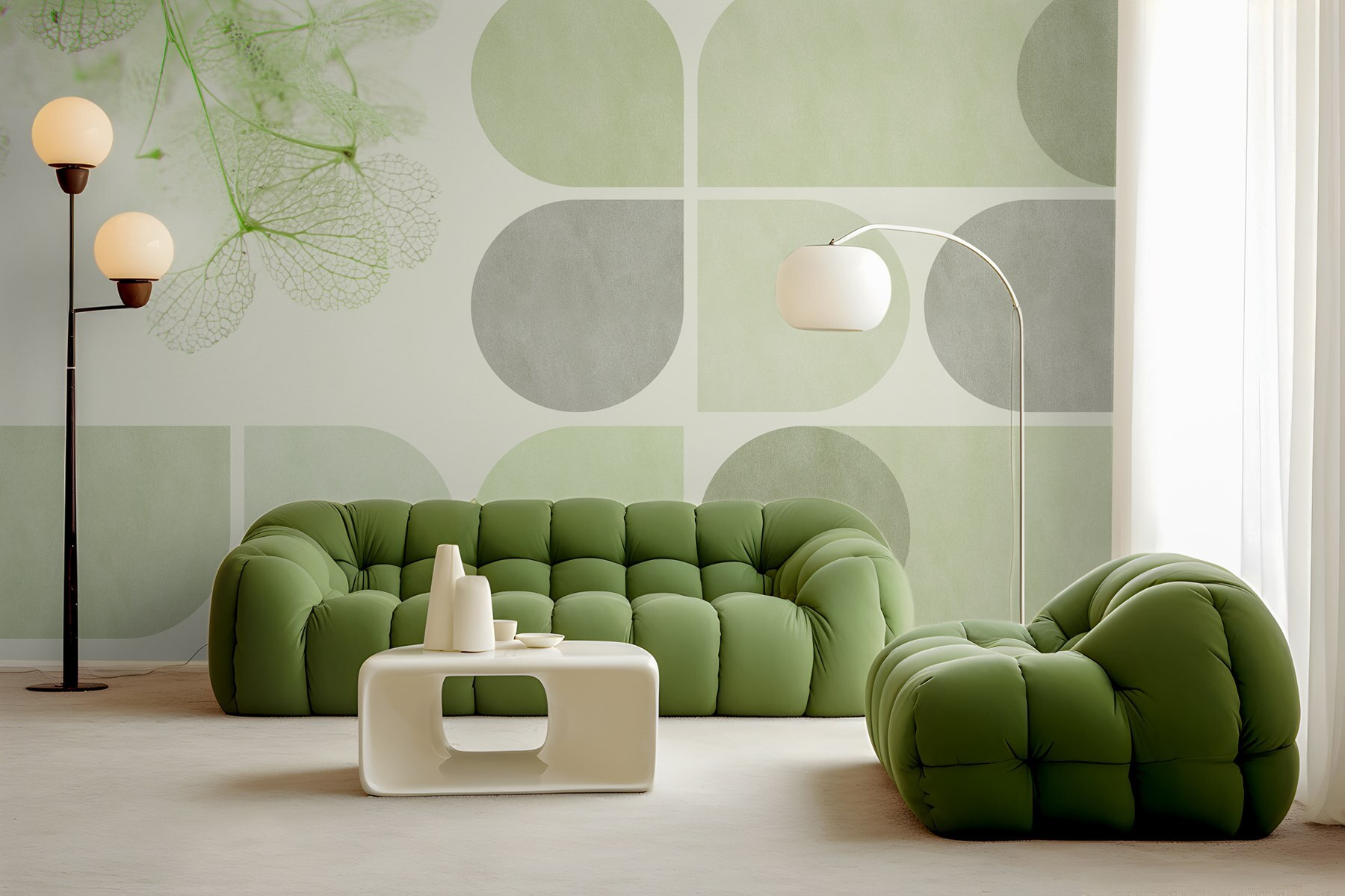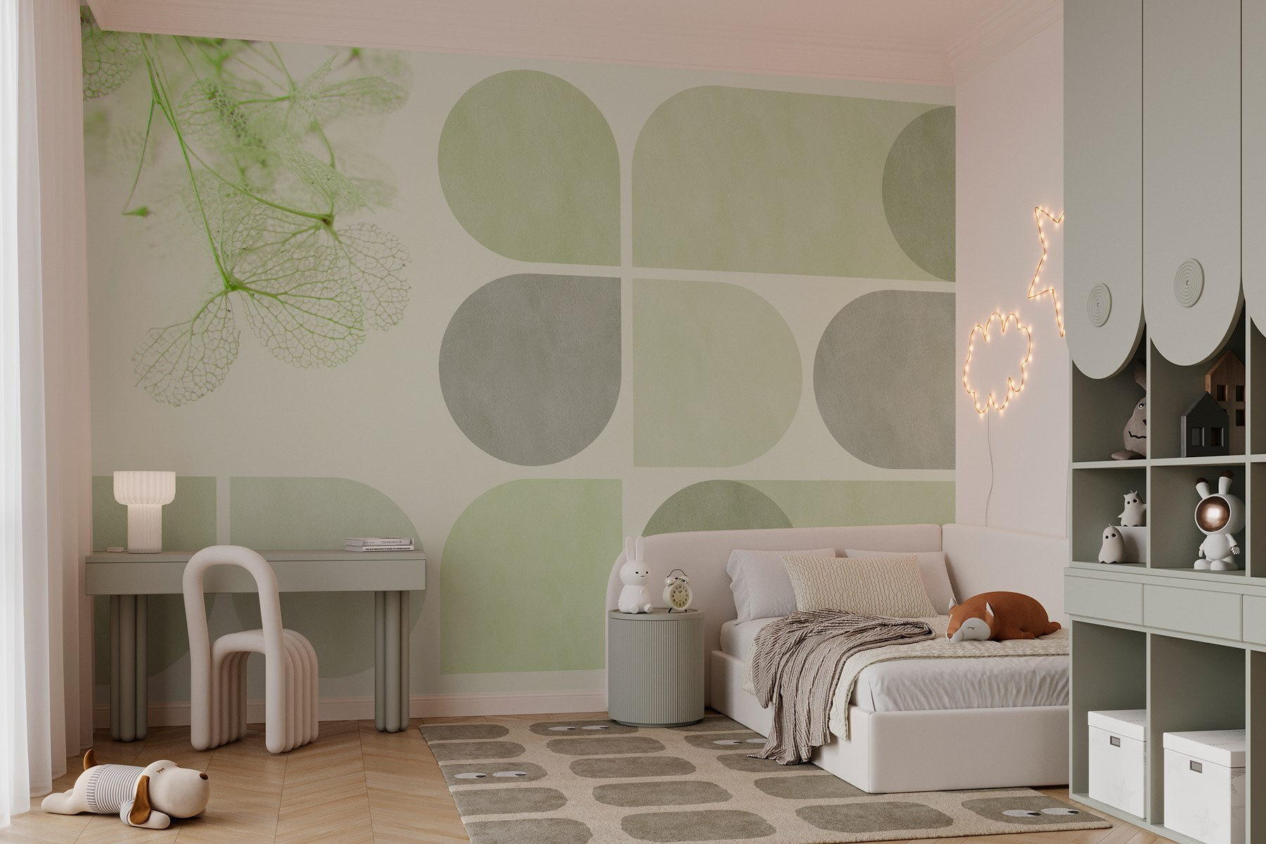 Transform any room into a serene escape with this mural featuring soft greens and delicate patterns. Imagine stepping into a space where the walls whisper calmness and joy, like a gentle breeze on a sunny afternoon. The playful mix of shapes adds a fun touch—perfect for sparking conversations. It’s versatile too, whether in a cozy reading nook or a lively dining area. Can’t you just picture hosting friends and laughing in a space that feels fresh and inviting? It’s not just decor; it’s a vibe, a little piece of tranquility waiting to embrace you.