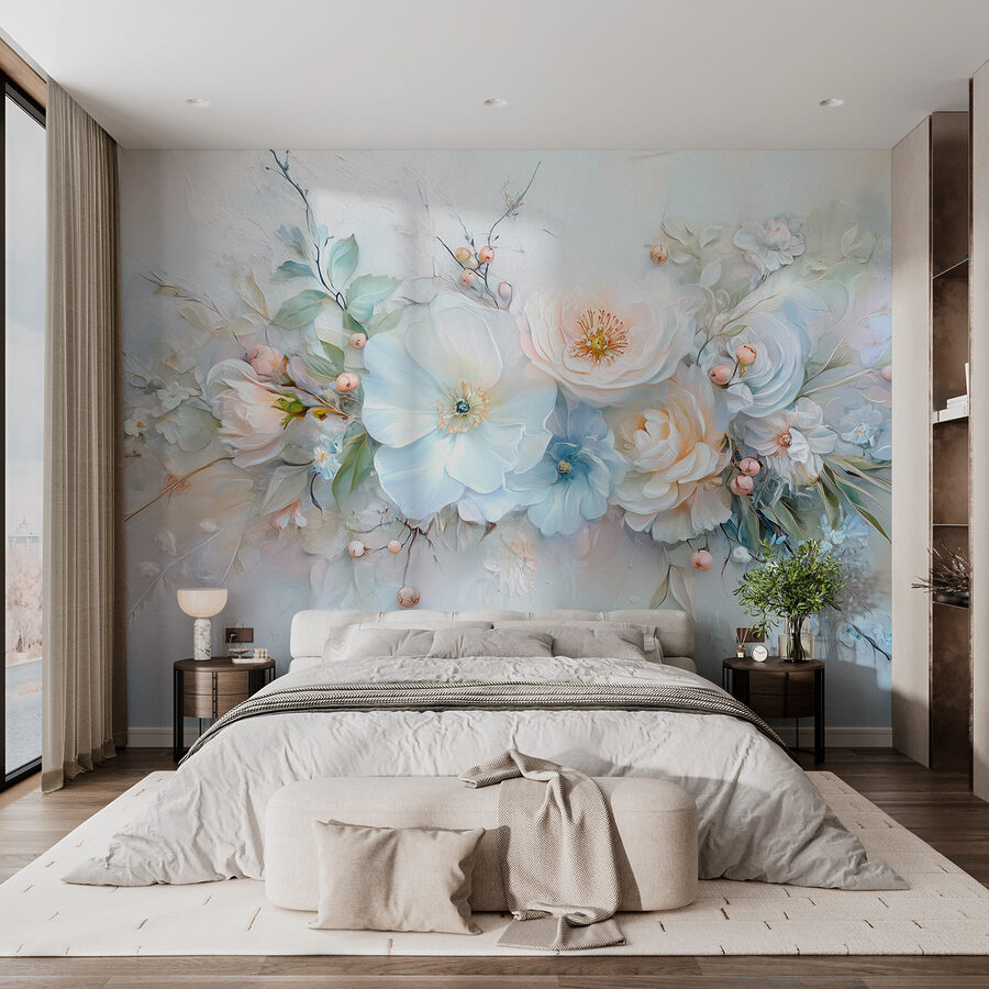 Picture this: a wall bursting with soft blooms and delicate leaves, a vibrant embrace of nature right in your living space. This wall mural isn’t just a decoration; it’s an invitation to breathe easy. Each petal seems to whisper secrets of spring, while those gentle blues and pinks create a serene backdrop. Imagine sipping your morning coffee, simply gazing at this floral wonder, ready to tackle the day. It really makes any room feel more alive—like sunshine turned into art. Seriously, who wouldn’t want to dream among flowers? It’s cheerful, it’s inviting, and it’s perfect for adding that touch of beauty everyone craves.