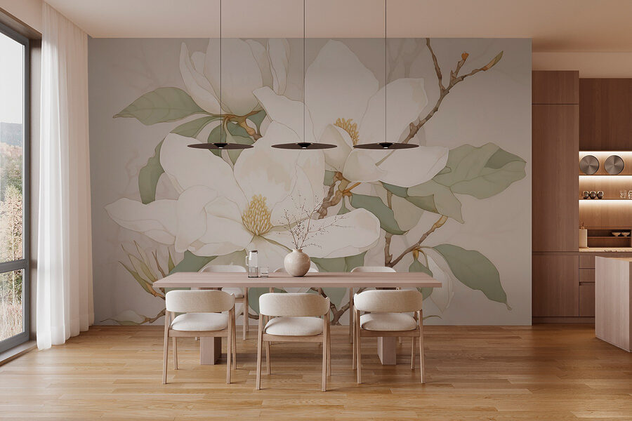 Step into a serene world with this wall mural of white flowers. Picture these elegant blooms softly unfurling on your wall, bringing a breath of fresh air to your space. It’s like a gentle whisper of spring, inviting warmth and tranquility. Imagine curling up with a book nearby, glancing up to see those lovely petals almost sway, like they’re nodding along to your favorite tunes. Perfect for a cozy living room or a peaceful bedroom, this mural adds an effortless charm. Who knew a bit of floral art could transform a room into a little haven? It’s all about those calming vibes!