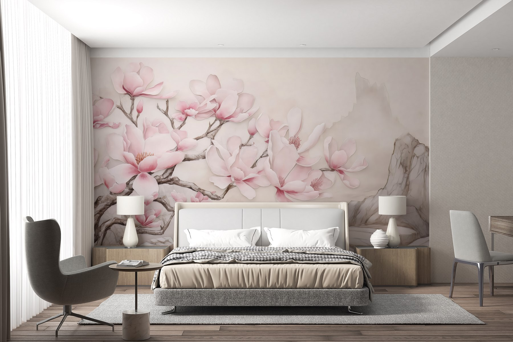 Bring a splash of spring into any room with this stunning wall mural featuring a tree adorned with delicate pink flowers. It’s like having a bit of nature indoors—without the pollen or pesky bugs. Imagine waking up to those soft petals each morning, brightening your space and mood. Perfect for living rooms or cozy nooks, it makes for a striking backdrop when friends come over. Plus, it’s a great conversation starter. “Oh, that? Just a little piece of my cherry blossom dream.” Who wouldn’t want that vibe?