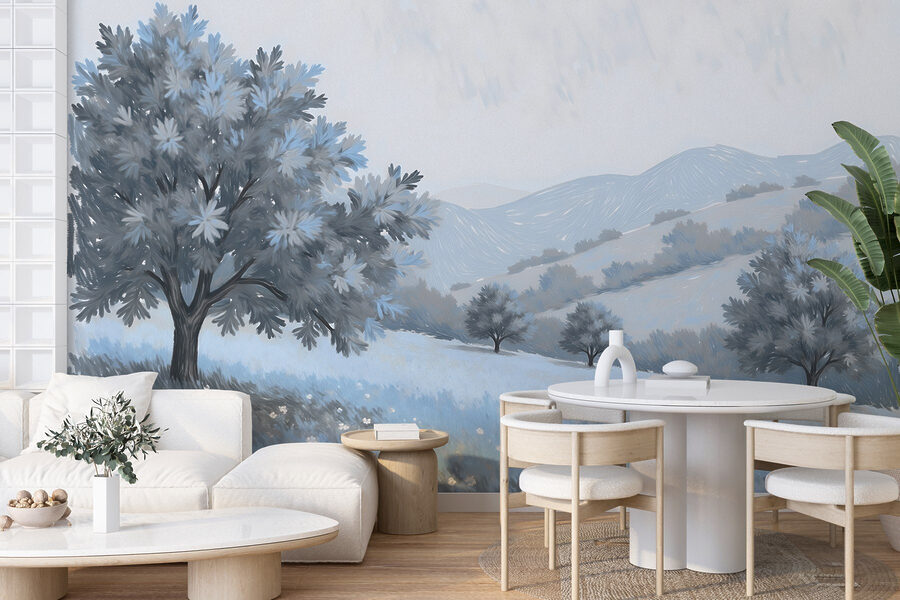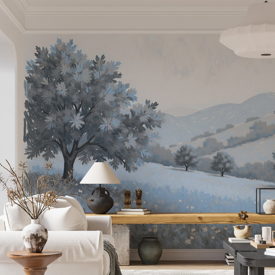 Transform any room into a serene escape with this beautiful wall mural featuring a dreamy landscape of trees and flowers. Imagine waking up to a view of soft blue hills and lush greenery, as if nature gently whispers, “Calm down, you’ve got this.” The subtle color palette brings a peaceful vibe, perfect for cozy nights in or lively gatherings. It’s like having a mini getaway right in your living space. Friends will marvel at how your walls can make them feel so relaxed, and you’ll be the one who knows the magic behind it. Let this mural remind you to take a moment and just breathe.
