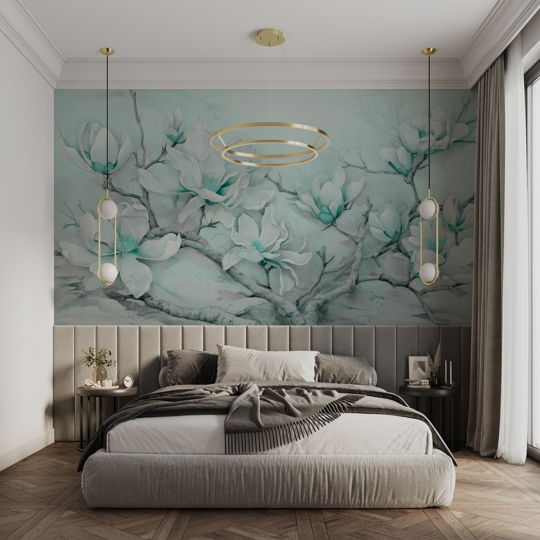 Transform any room with this mesmerizing mural featuring delicate white flowers blooming on a branch. Imagine stepping into your space and instantly feeling a sense of calm wash over you. The soft hues and gentle design create a serene atmosphere, perfect for those quiet mornings with a cup of coffee—or perhaps inspiring a little afternoon creativity. Picture friends stopping to admire it, maybe even mistaking it for the real deal. It’s not just decor; it’s an invitation to admire nature’s beauty right at home.