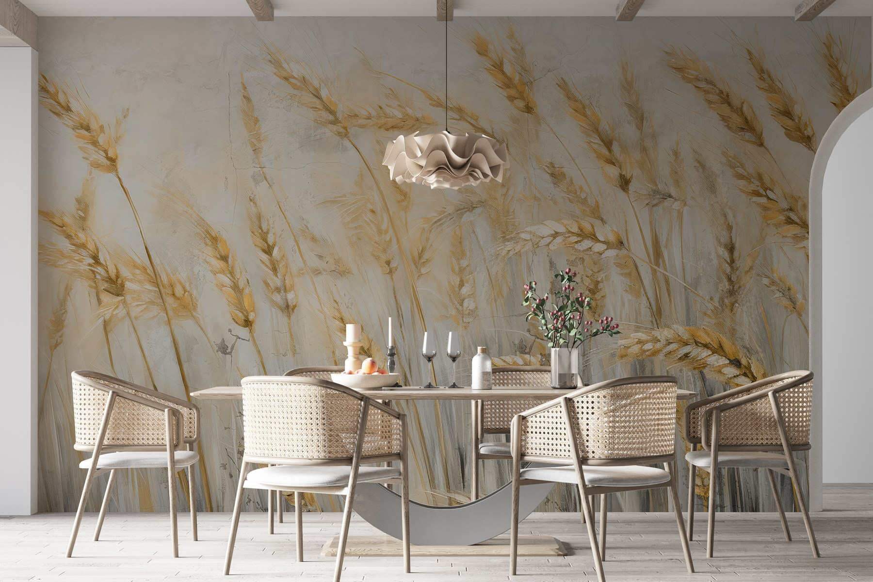 Step into a serene world with this stunning wheat field mural. Imagine a soft breeze rustling the golden stalks, while the calming colors bring a touch of nature right into your home. It’s like having a piece of the countryside without having to worry about weeding the garden. Perfect for a living room or a cozy reading nook, it invites the warmth of sunny days. And who wouldn’t want to sip their coffee surrounded by such peaceful vibes? This mural doesn’t just decorate—it transforms your space into a mini escape.