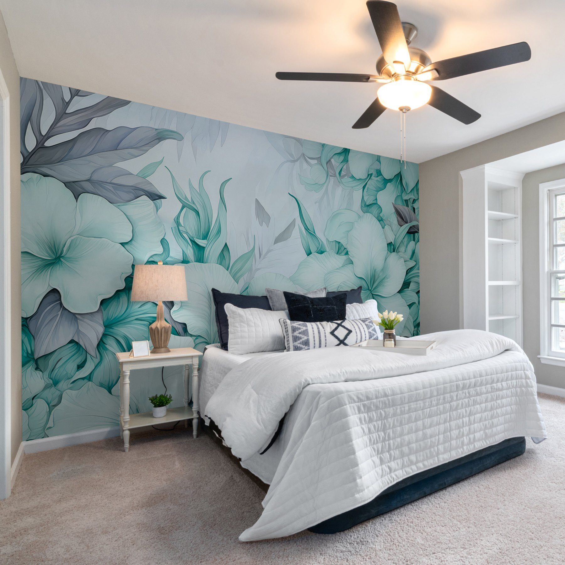 Imagine transforming your space into a calming oasis with the Delicate Green and Gray Foliage Wall Mural. This design features luscious leaves and soft florals that whisper tranquility. It’s like stepping into a serene garden without leaving your home. Picture a cozy corner where you sip tea, surrounded by nature’s gentle embrace—perfect, right? Whether it’s for a living room or a serene bedroom escape, this mural adds that dash of refreshing elegance. Just be careful—friends might want to take selfies with your new backdrop!