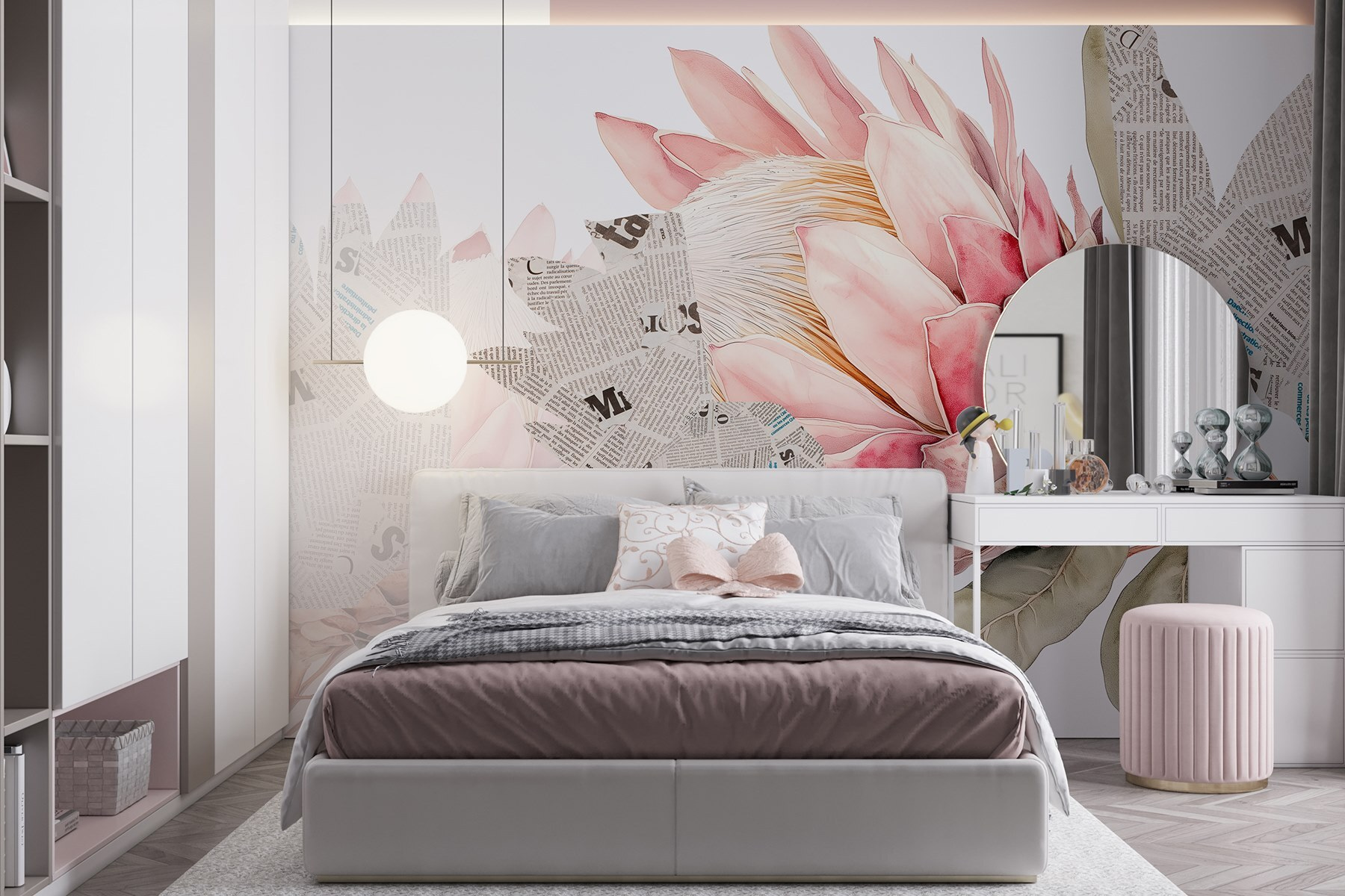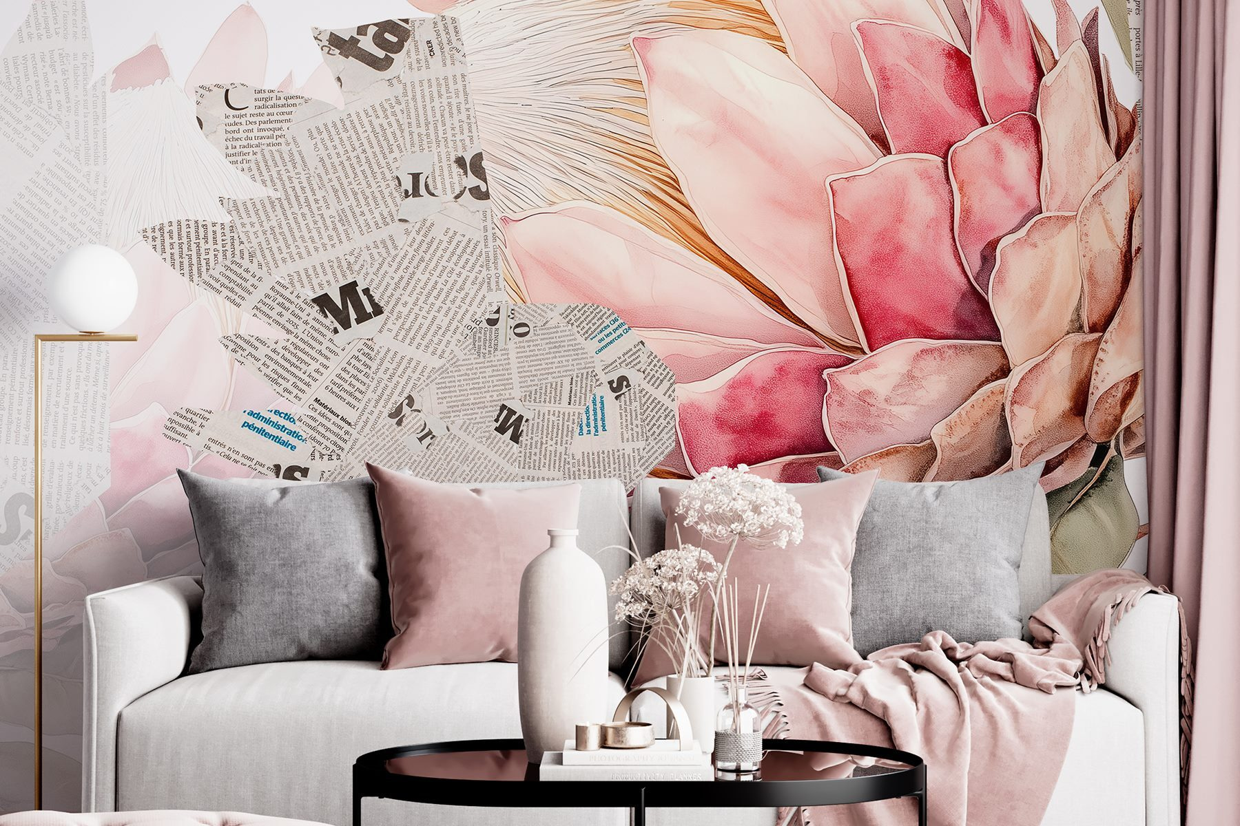 Calling all flower lovers! This mural combines vibrant florals with a quirky, newspaper twist that instantly brightens up any space. Imagine walking into a room that feels like a garden kissed by imagination. The soft petals pop against the backdrop of scattered articles, creating a playful yet calming vibe—perfect for that corner of your home that needs a little something special. It’s like nature and stories teamed up for a design party. Hang it in the living room or a cozy reading nook, and let it spark full conversations—or daydreams. Little touches like these can make a world of difference. So, why not bring a bit of floral magic into everyday life?