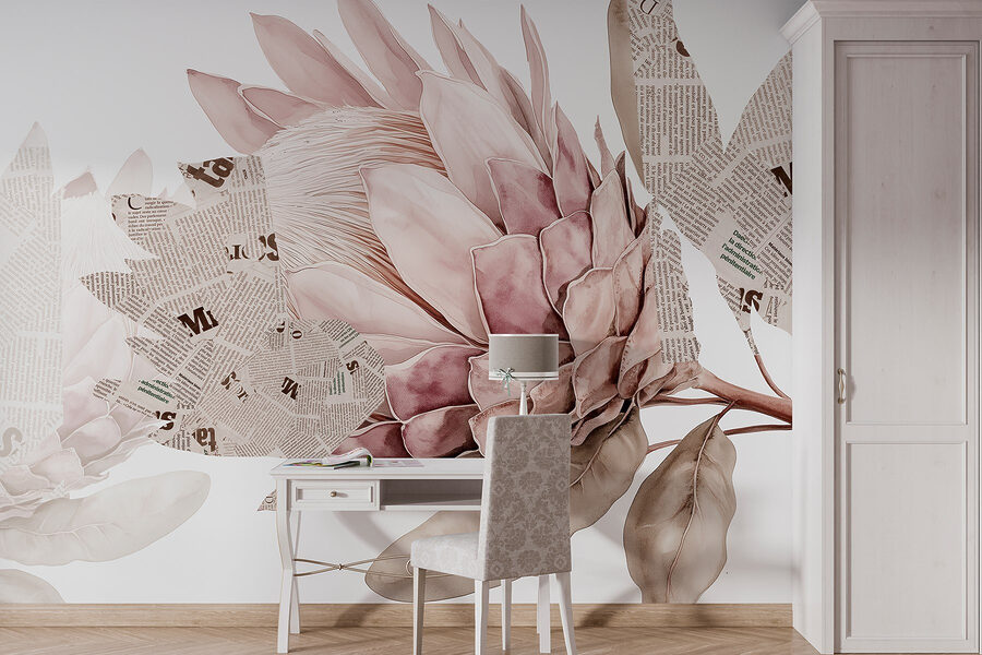 Transform a dull wall into a bloom of creativity with the “Wall Murals Flower with Newspaper and Leaves.” Imagine walking into a room where a stunning floral design greets you, blending soft colors with bits of vintage newspaper. It’s like bringing the garden inside—without the bugs! Every glance at the mural sparks a cozy vibe, inviting daydreams and inspiration.