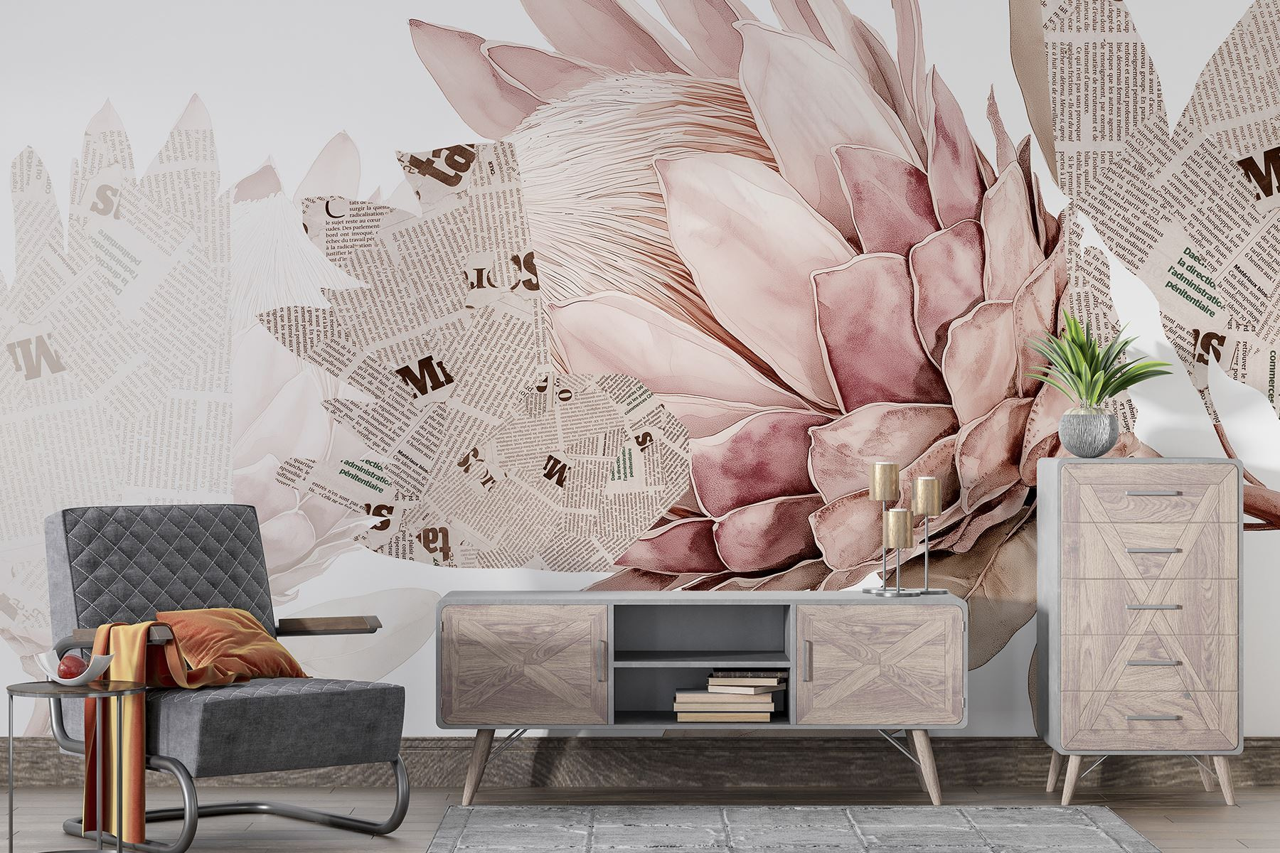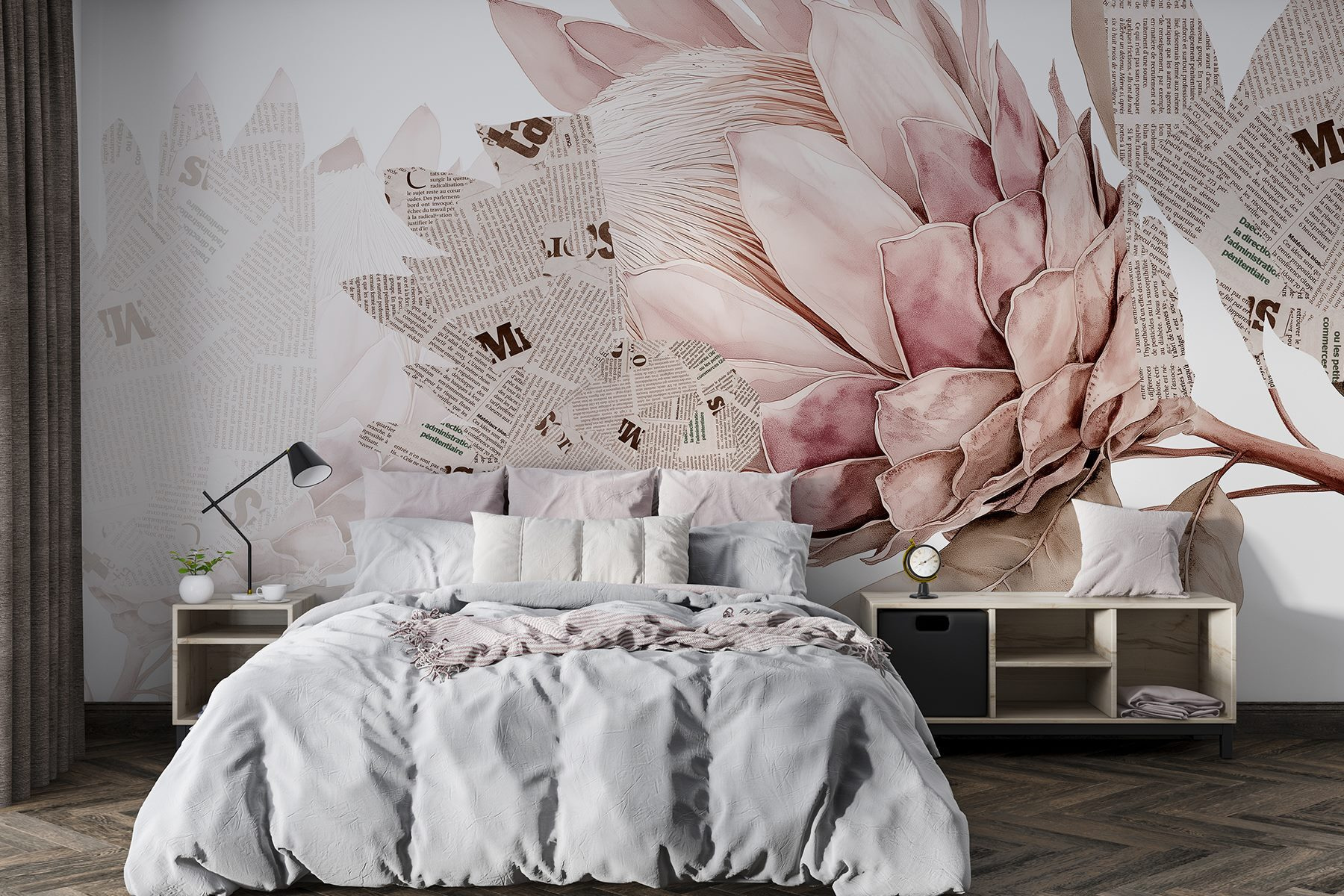 Transform a dull wall into a bloom of creativity with the “Wall Murals Flower with Newspaper and Leaves.” Imagine walking into a room where a stunning floral design greets you, blending soft colors with bits of vintage newspaper. It’s like bringing the garden inside—without the bugs! Every glance at the mural sparks a cozy vibe, inviting daydreams and inspiration.