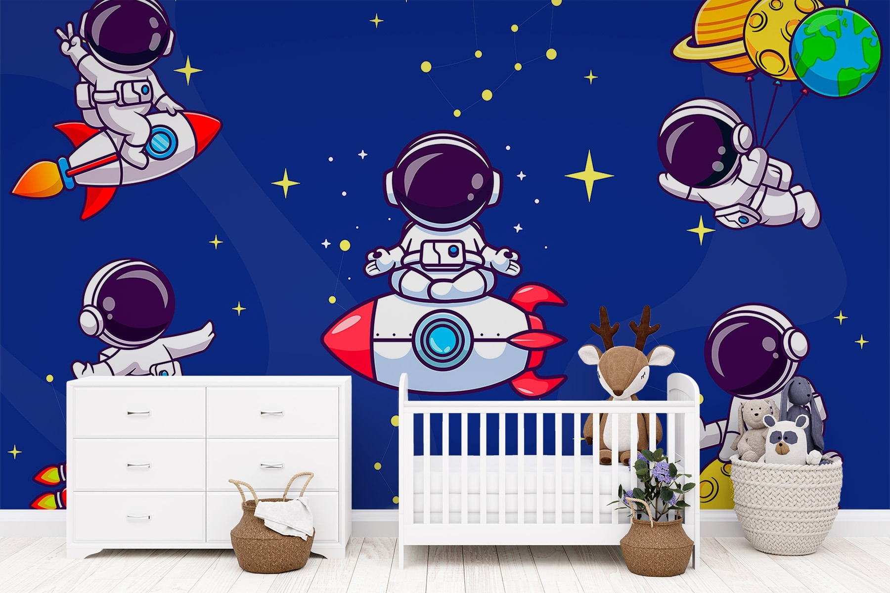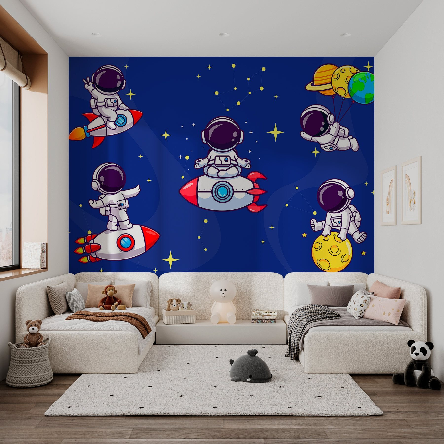 Transform any room into a whimsical cosmos with this delightful wall mural featuring cartoon astronauts zooming through space. Imagine little explorers gracefully floating among colorful planets and twinkling stars. It’s like peeking into a galactic playground right from your couch. Whether it’s a kid’s room or a playful living area, this mural sparks joy and ignites imagination, inviting everyone to dream big. Plus, who wouldn’t crack a smile at an astronaut chilling on a moon? So, let those space adventures begin and turn your wall into a stellar backdrop!