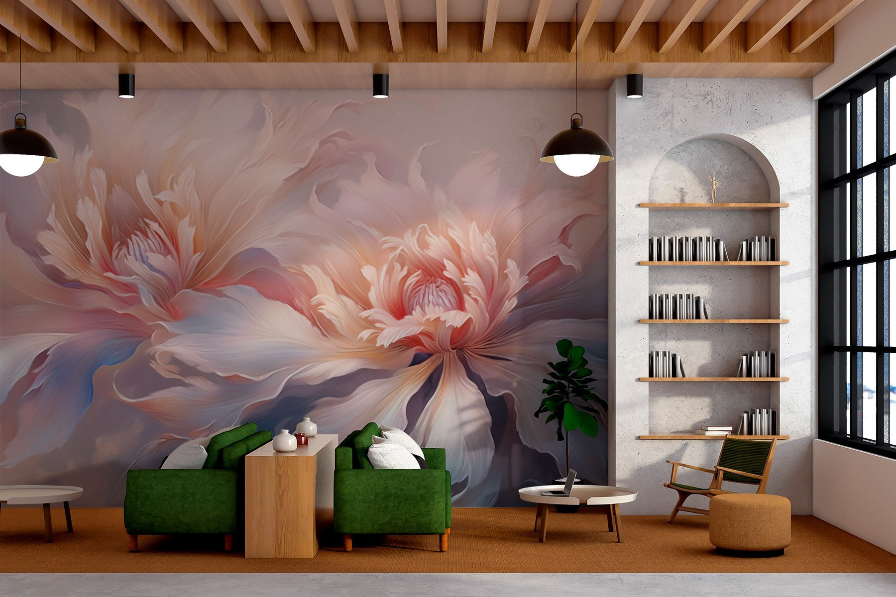 Transform any room into a floral oasis with the “Delicate Blossoms in Soft Hues” mural. Picture this: soft pastels curling around your walls like a gentle breeze on a spring day. Those blossoms are practically inviting you in for a cup of herbal tea and a cozy chat. It’s like having an art gallery right in your home, but without the snooty vibe.