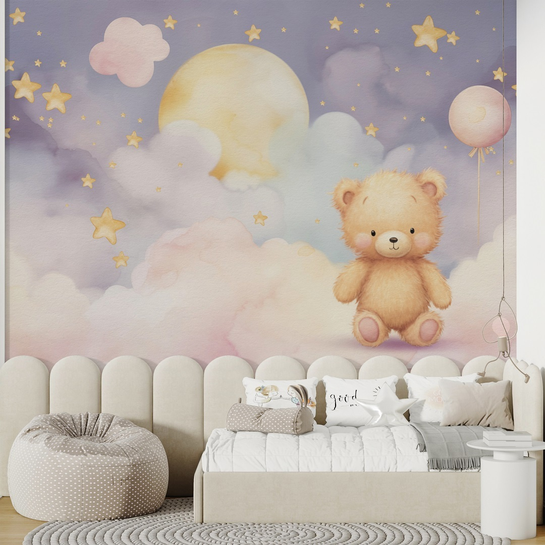 Brighten up a child’s space with this whimsical wall mural featuring an adorable teddy bear perched on a soft cloud. Imagine little ones gazing at this charming scene as they drift off to sleep, feeling like they’ve been whisked away to a dreamy world. The gentle pastel colors create a soothing backdrop, making it perfect for nurseries or playrooms. Whether it’s storytime or nap time, this mural adds a sprinkle of joy and comfort. It’s like giving a big hug every day—who wouldn’t want that? Add some magic to the walls, and watch imaginations take flight!