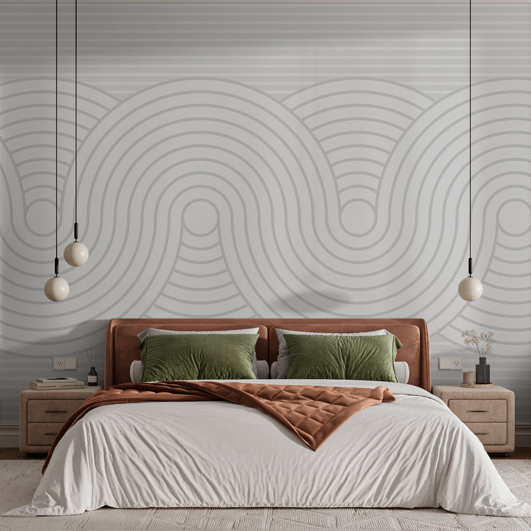Imagine walking into a room where the walls just seem to breathe creativity. This mural, with its flowing white and gray patterns, is the kind of design that doesn’t just hang there—it dances. The gentle curves and stripes create a calming rhythm, perfect for a cozy reading nook or even a lively dining area. It wraps a space in a soft embrace, making everything feel a bit more refined yet effortless. It’s like wearing your favorite comfy sweater that still looks chic. Transform your walls into a soothing canvas and watch how the atmosphere shifts. Who knew decor could be so refreshing?