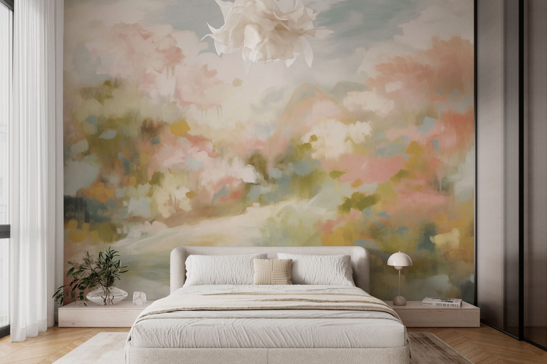 Transform any room with this stunning wall mural that captures a dreamy landscape of soft pastels and light. Imagine the gentle blush of flowers dancing with a hint of fresh greenery, all wrapped in calming hues. It’s like bringing a serene garden indoors—no watering required! Perfect for those moments when a little joy is needed, this mural invites daydreaming and relaxation. Picture a cozy reading nook or a sunny dining space, where every glance at the wall sparks a smile. It’s more than decor; it’s a feeling of warmth and tranquility wrapped up in art.