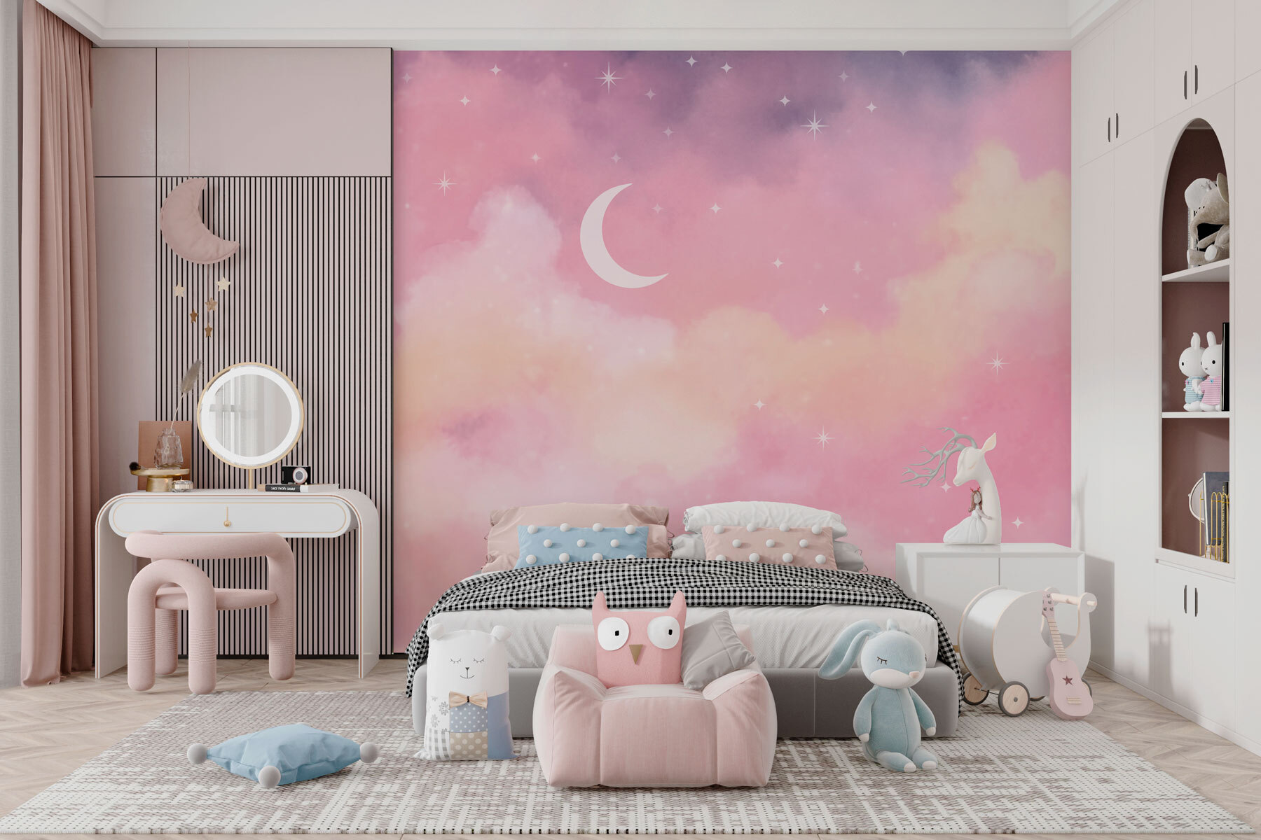Transform a room into a dreamy escape with the Wall Murals Moon and Stars in the Sky. Imagine little ones drifting off to sleep under a soft, pastel night sky, where fluffy clouds play hide-and-seek with twinkling stars. It’s not just a backdrop; it’s a canvas for bedtime stories and wild imaginations. Perfect for nurseries or playrooms, this mural captures a whimsical vibe that sparks joy. Watching kids gaze up at the soothing hues, dreaming of adventures among the clouds—now that’s a special moment! A dash of wonder, a sprinkle of magic; this mural wraps the space in a comforting embrace.