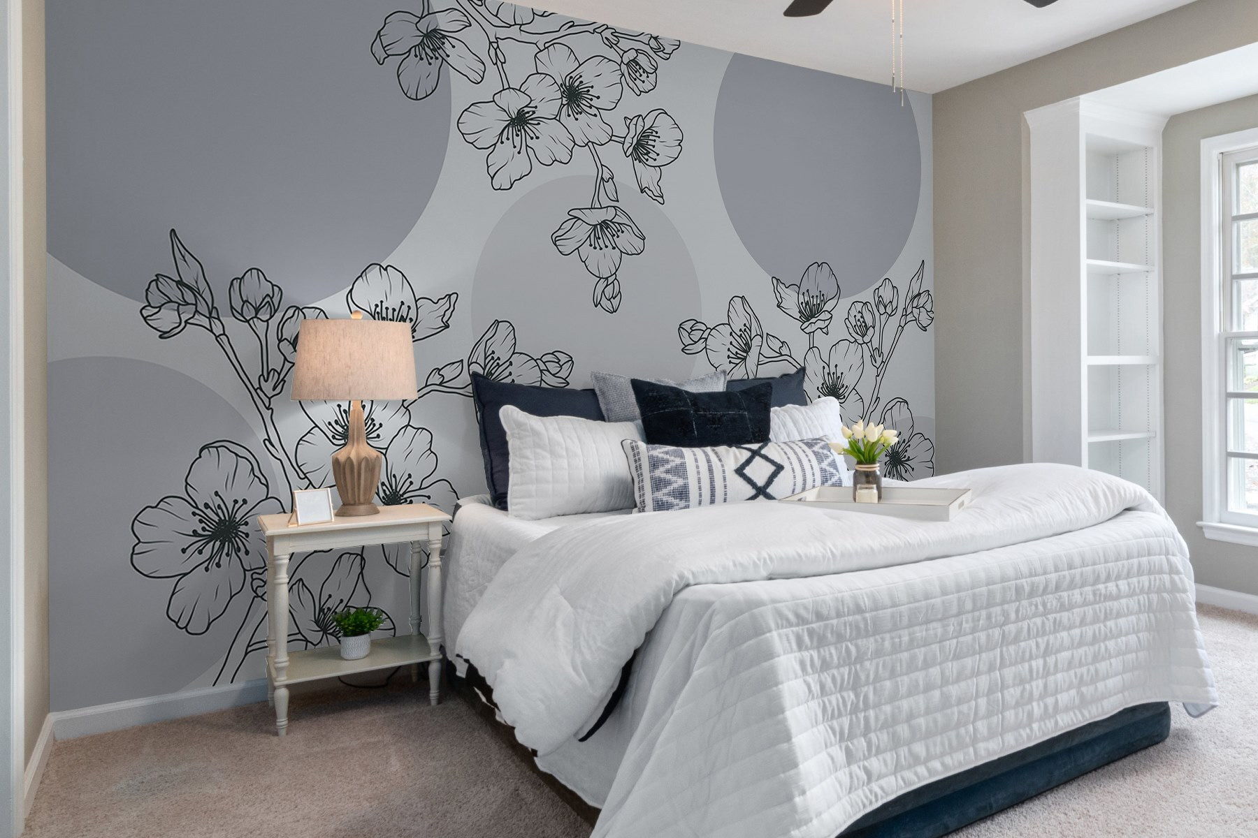 Transforming a room into a serene escape is easy with the “Delicate Blossoms Against Soft Backdrop” mural. Picture this: gentle cherry blossoms dancing against a calming gray backdrop, creating instant tranquility. It’s like bringing a peaceful zen garden right into your home—no rakes needed!