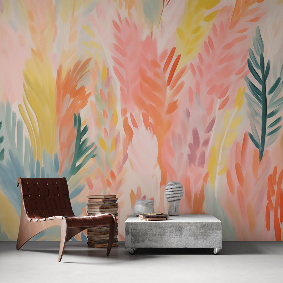 Brighten up any space with this stunning wall mural, Colorful Leaves on a White Surface. It’s like a garden party for your walls, with playful splashes of color dancing across a light backdrop. Imagine coming home after a long day, plopping down on your couch, and being greeted by this cheerful burst of nature that makes you smile. Use it in a living room, bedroom, or even a playful nook. It brings a sense of calm yet lively energy—perfect for daydreaming or inspiring creativity. It’s a simple way to infuse your space with personality, without needing a complete makeover.