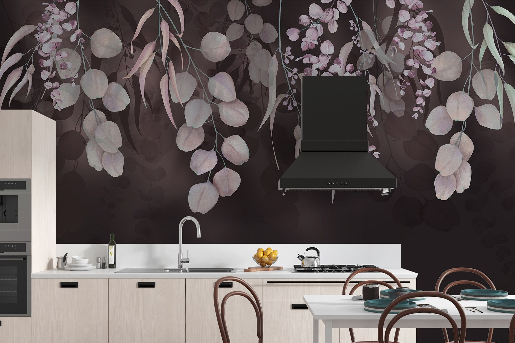 Transform any room with this stunning mural, “Soft Foliage Against a Dark Backdrop.” It’s like bringing a secret garden indoors, where soft, muted leaves dance across a cozy, dark canvas. Imagine leaning back in your favorite chair, sipping tea, and soaking in those gentle botanical vibes. The design invites a sense of calm, perfect for relaxation or even daydreaming about that tropical getaway. Whether it’s a living room or a serene bedroom, this mural will have guests talking. It’s a leaf-loving wonder that feels fresh yet timeless, adding just the right splash of nature to your space.
