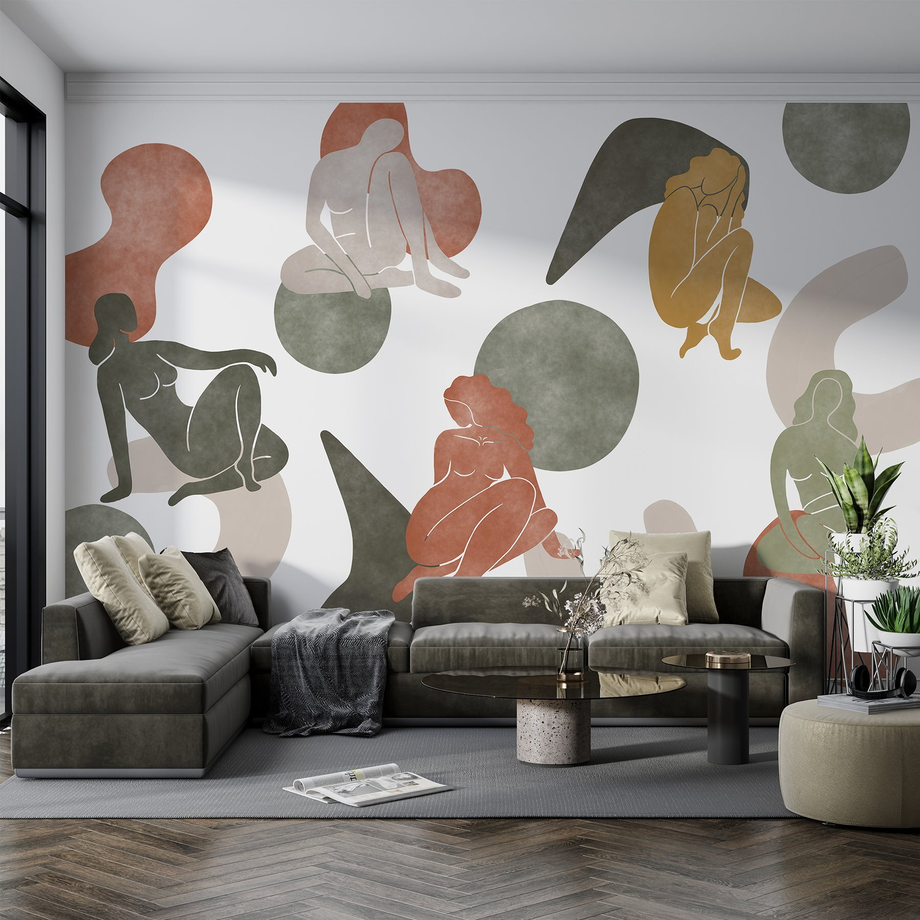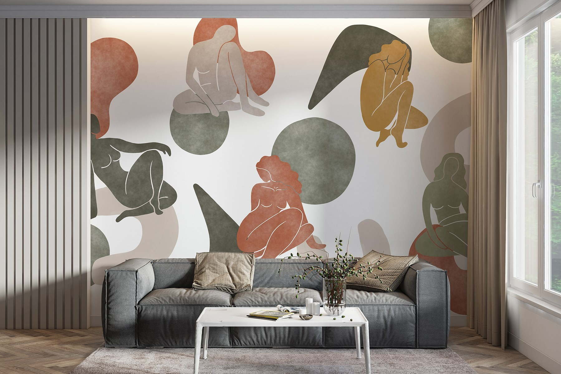 Transform your space with this enchanting mural featuring a circle of women, each lost in their own thoughts. With soft, earthy tones and abstract shapes, it brings a cozy yet vibrant vibe to any room. Imagine sipping coffee, feeling inspired by the gentle curves and playful forms. It’s like a warm hug on a rainy day or the comforting whisper of a friend. Perfect for a living room, creative workspace, or a serene corner where imagination thrives. Let these figures spark joy and conversation in your home—because who doesn’t love a bit of storytelling through art?