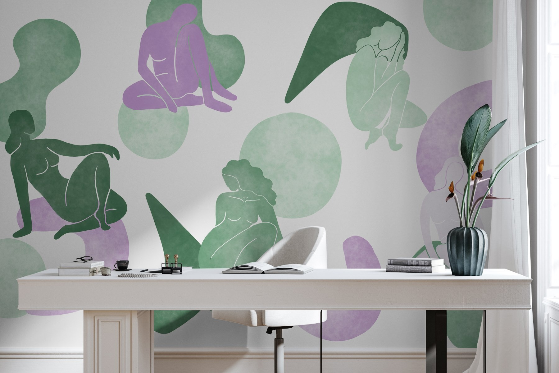Transform any space with this captivating mural featuring a group of women sitting and posing. It’s not just a wall decoration; it’s a vibe, a conversation starter, and a glimpse into a world of creativity. Imagine walking into a room and being greeted by these silhouettes, each telling a story. The soft colors and flowing forms invite a sense of calm, making it perfect for a cozy reading nook or an artsy living room. It adds personality without yelling “look at me.” Friends will be asking where you found such a gem, and your walls will thank you for the upgrade. Let the beauty of this mural inspire those daily moments of quiet reflection or brilliant creativity.