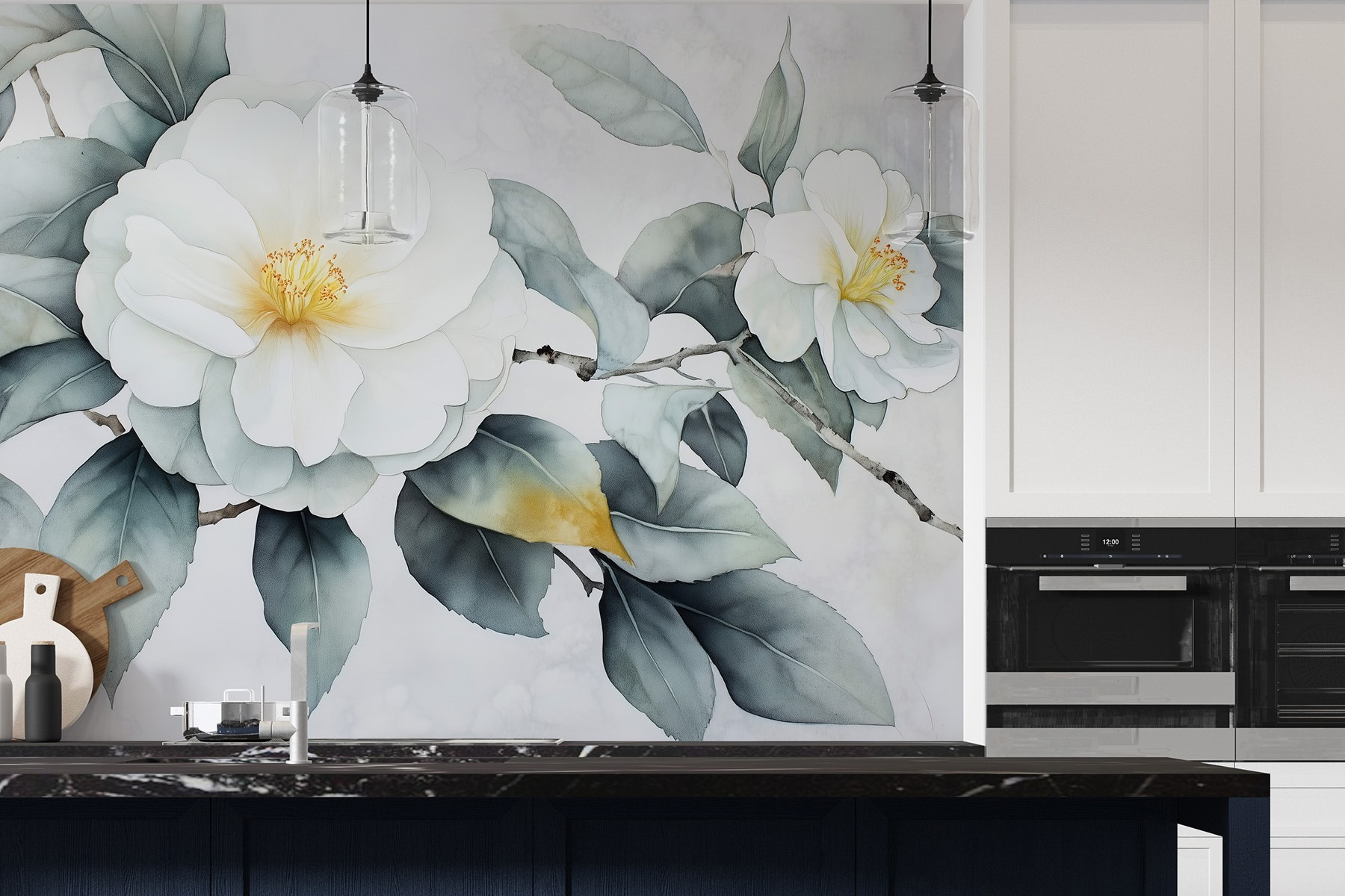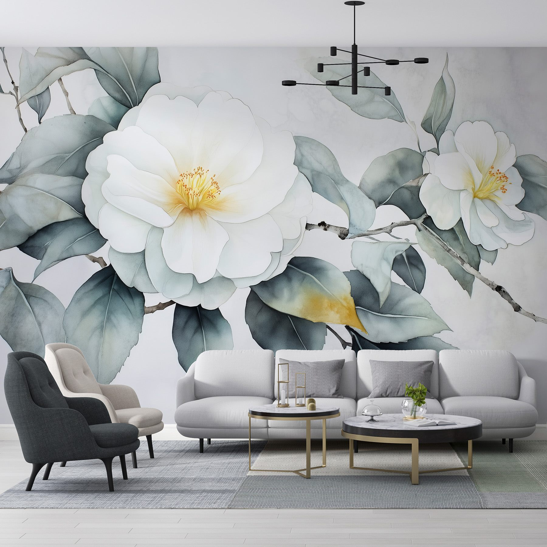 Transform your space into a serene oasis with this wall mural featuring stunning white flowers and gentle green leaves. It’s like bringing a piece of nature right into your home without requiring a watering can. Imagine waking up to this lovely artwork, where each petal seems to whisper a calming message. Friends might think you’ve taken up gardening, but really, it’s just this mural working its magic.
