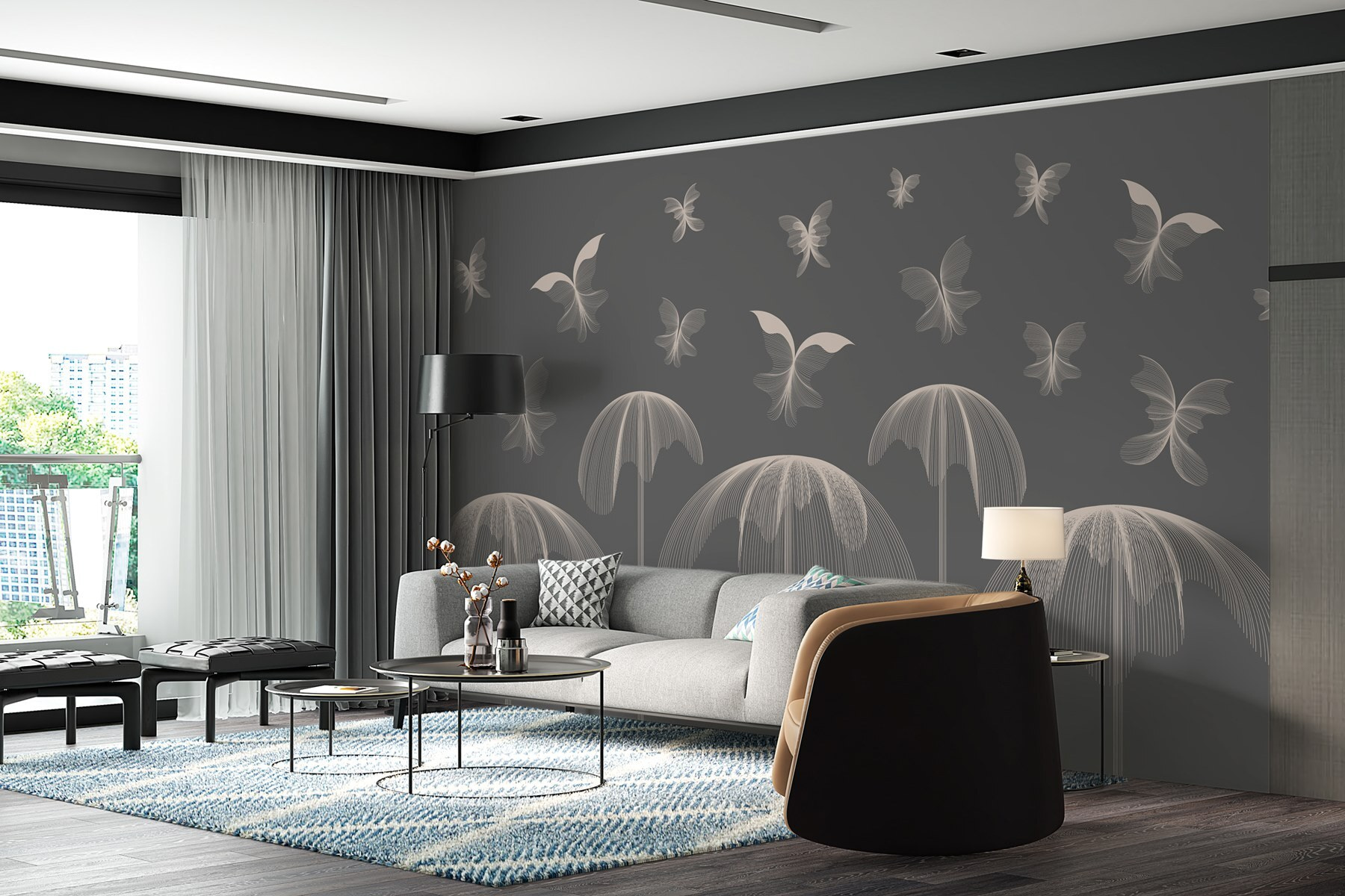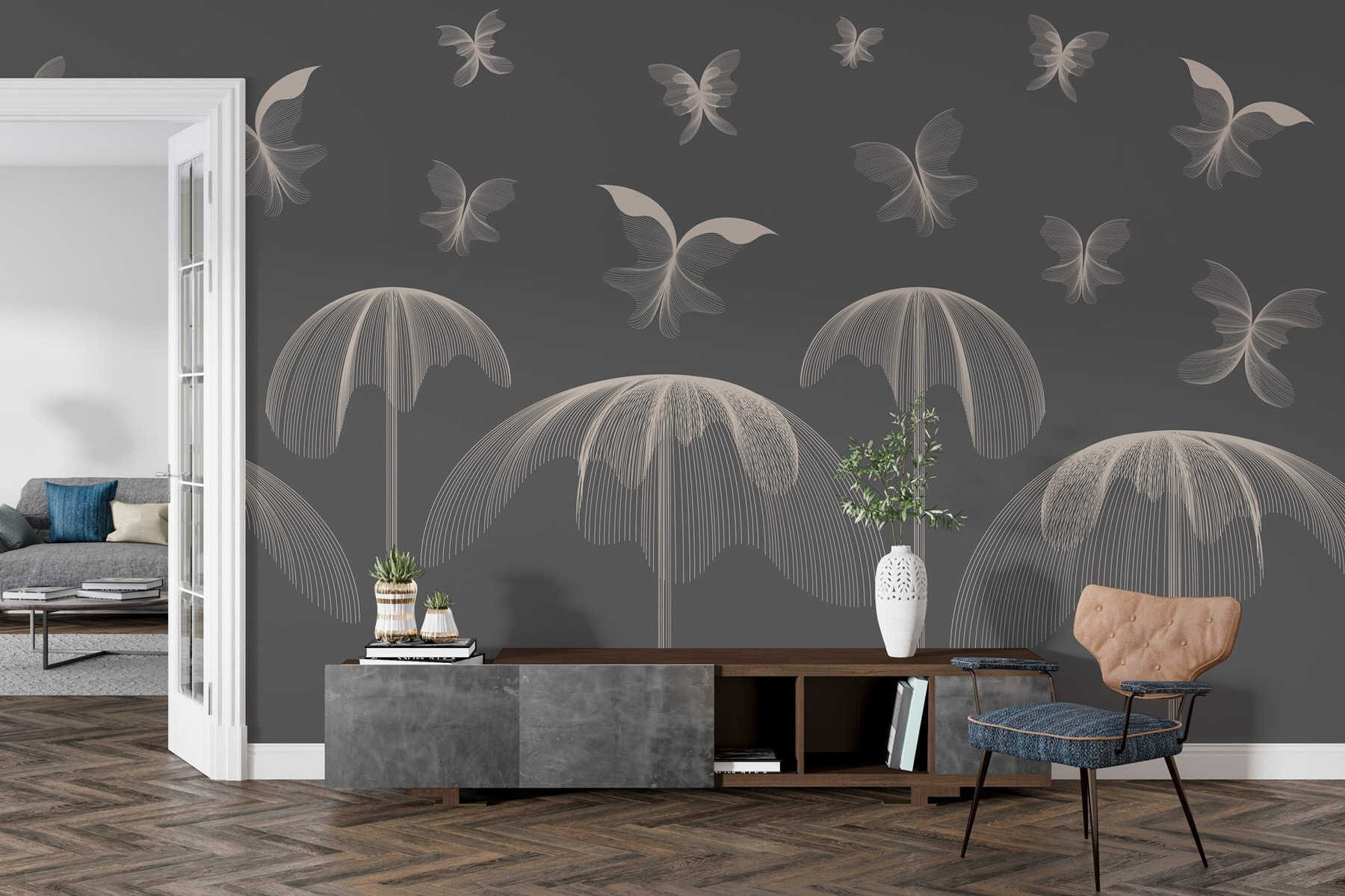 Transform your space with a delightful splash of whimsy and charm! This mural of butterflies dancing across the sky adds a soft yet vibrant touch to any room. Imagine waking up to a gentle flutter of wings every morning, bringing a sense of calm and joy. Perfect for a cozy nook, a playful nursery, or even your creative office, it’s like having a little piece of nature indoors. The abstract style keeps it trendy while the butterfly motif evokes a sense of freedom. Whether you’re sipping coffee or reading a book, these graceful creatures will surely inspire daydreams and smiles!