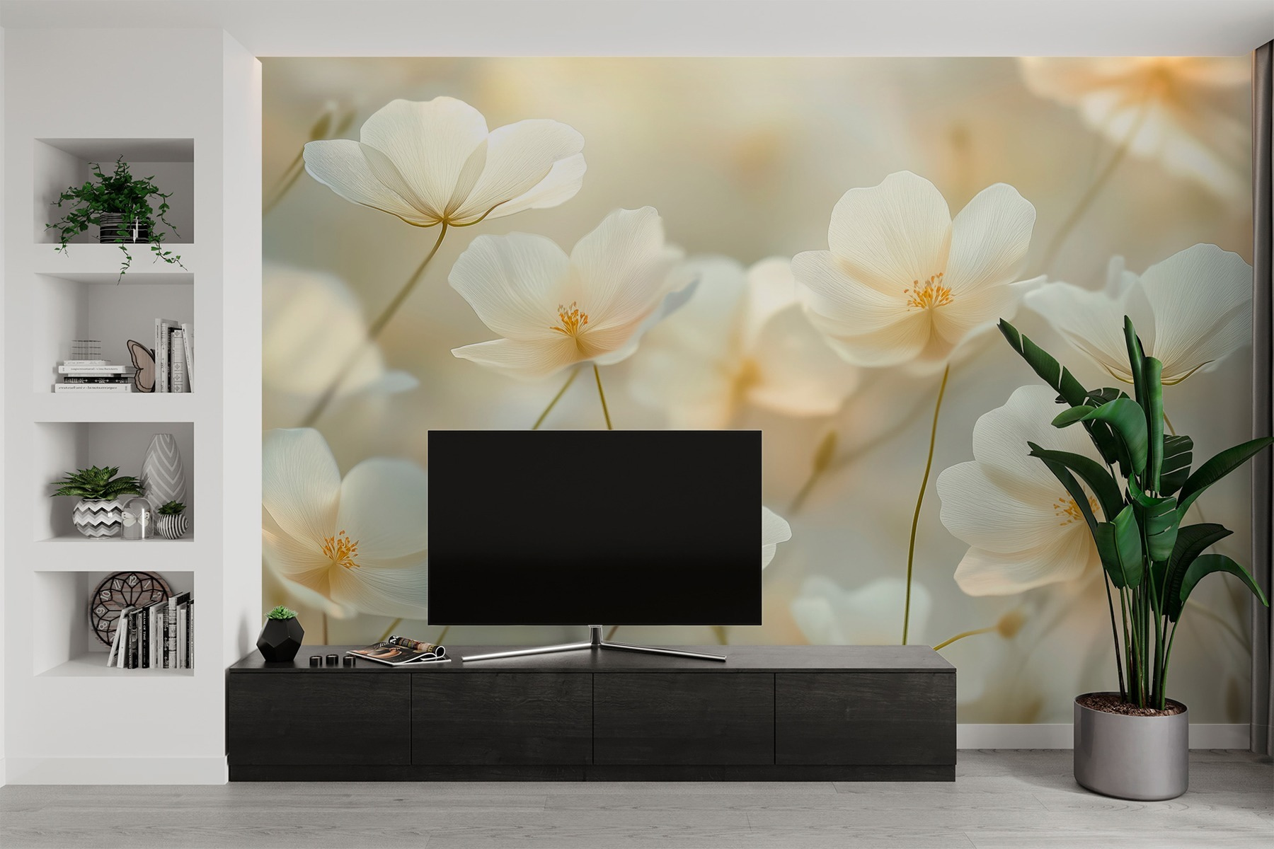 Transform any room into your personal garden oasis with this stunning mural of white flowers. Imagine waking up to a gentle reminder of blooming petals, their soft allure instantly lifting the mood of your space. These flowers seem to dance on the wall, whispering tales of springtime and sunny days. Perfect for cozy corners or that bare wall that’s been begging for some love, it adds a fresh touch without overwhelming. It’s like having a piece of nature inside, where every glance feels like a hug from the outdoors. Who wouldn’t feel a bit happier with this beauty surrounding them? Your walls deserve a little flower power!