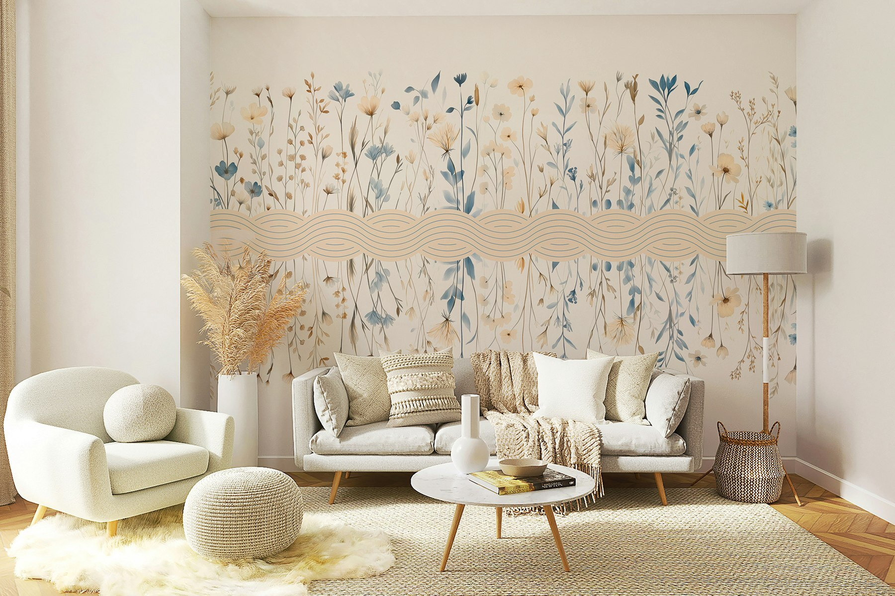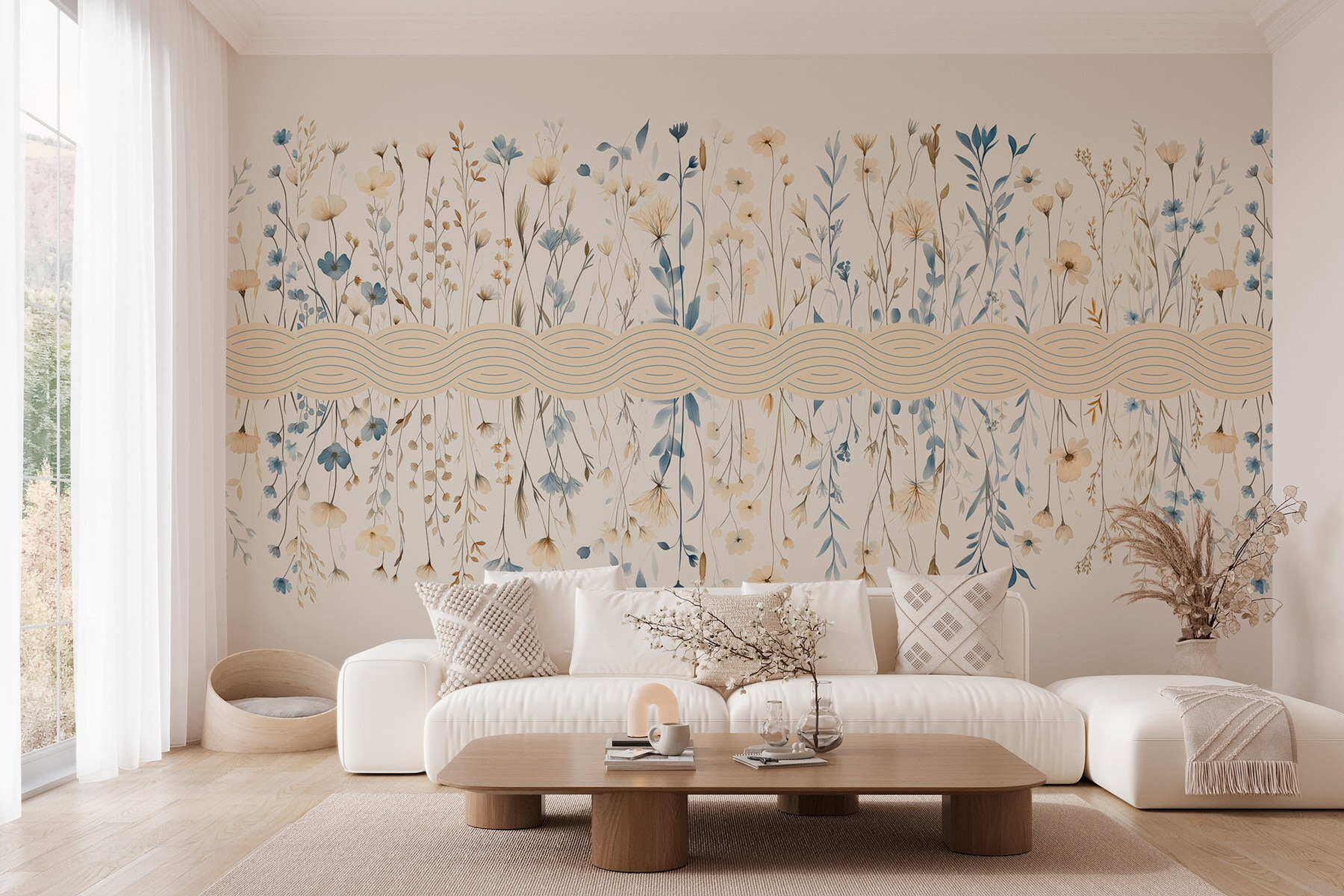 Transform a plain wall into a dreamy escape with this charming floral mural. Imagine stepping into a sunny garden every time you enter the room. The soft blues and whites of those delicate flowers really pop yet keep things serene. It’s like inviting a breath of fresh air indoors. Perfect for a cozy nook or that awkward wall that needs some love, it adds a touch of whimsy without overwhelming the senses. Friends might even ask if you’ve secretly become a botanist. Just hang it up and let the good vibes flow!