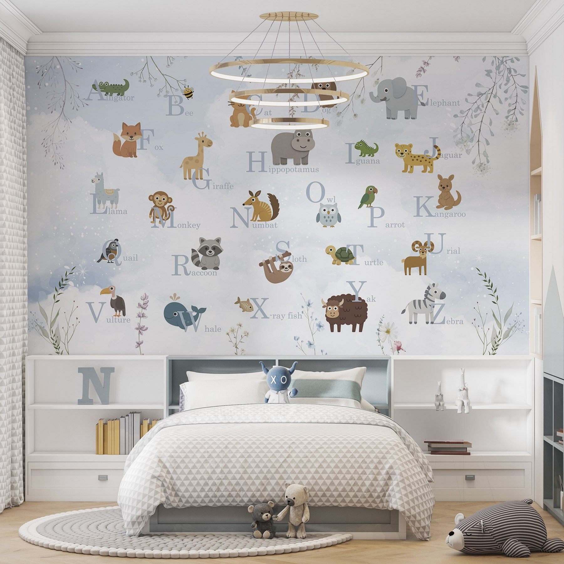 Transform any child’s space into a playful jungle with the “Group of Animals with Letters” wall mural. It’s like bringing a whole zoo right into your home—minus the smell of popcorn and cotton candy, of course. Imagine little ones pointing out their favorites while learning the alphabet. Adorable critters like llamas and kangaroos frolic amidst soft, dreamy clouds. It’s a perfect mix of fun and education. Parents will appreciate the whimsical vibe, and kids? They’ll be over the moon. Every glance sparks joy and curious chatter. Nothing quite beats the giggles of a child discovering their new animal friend on the wall!