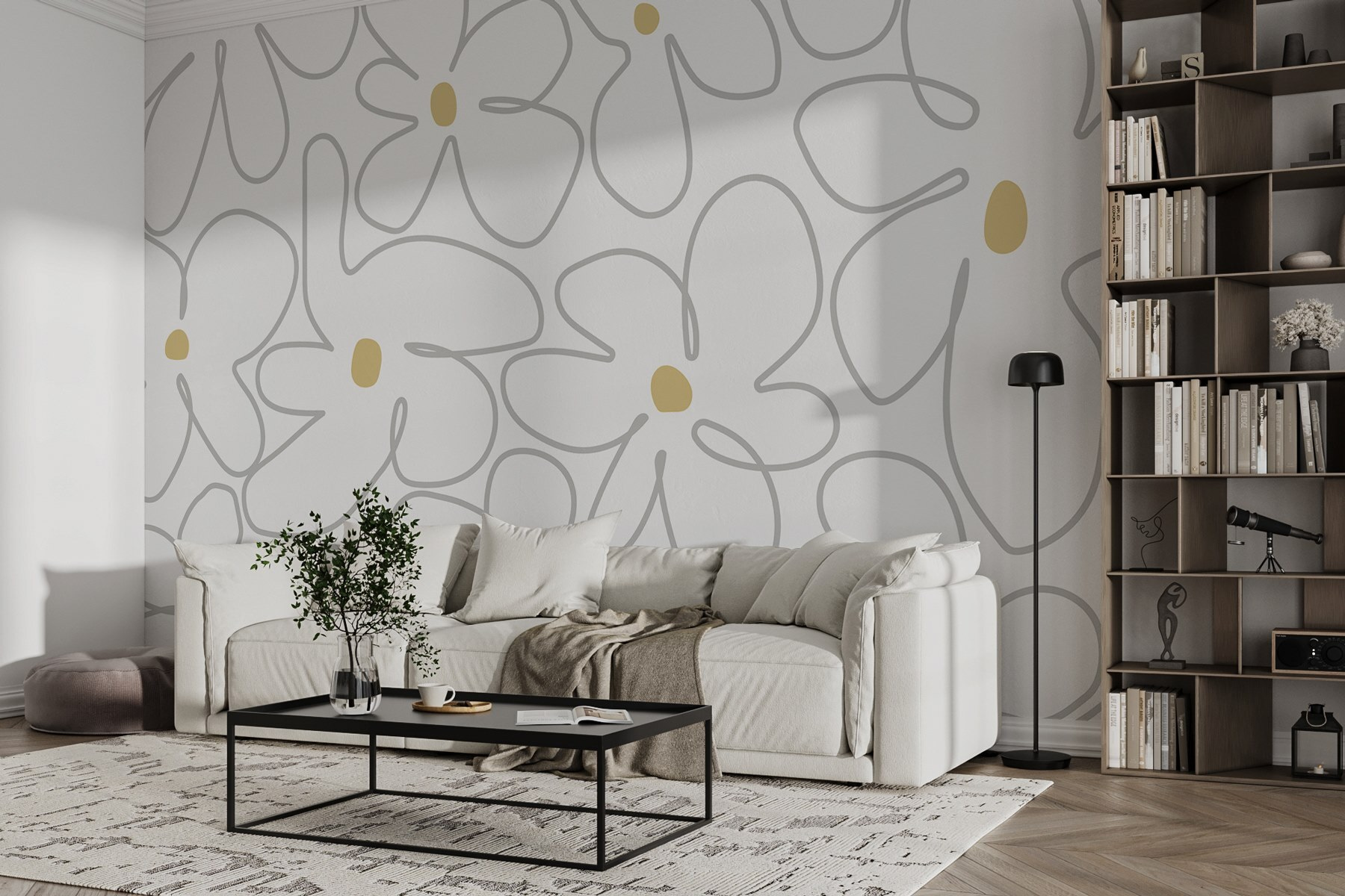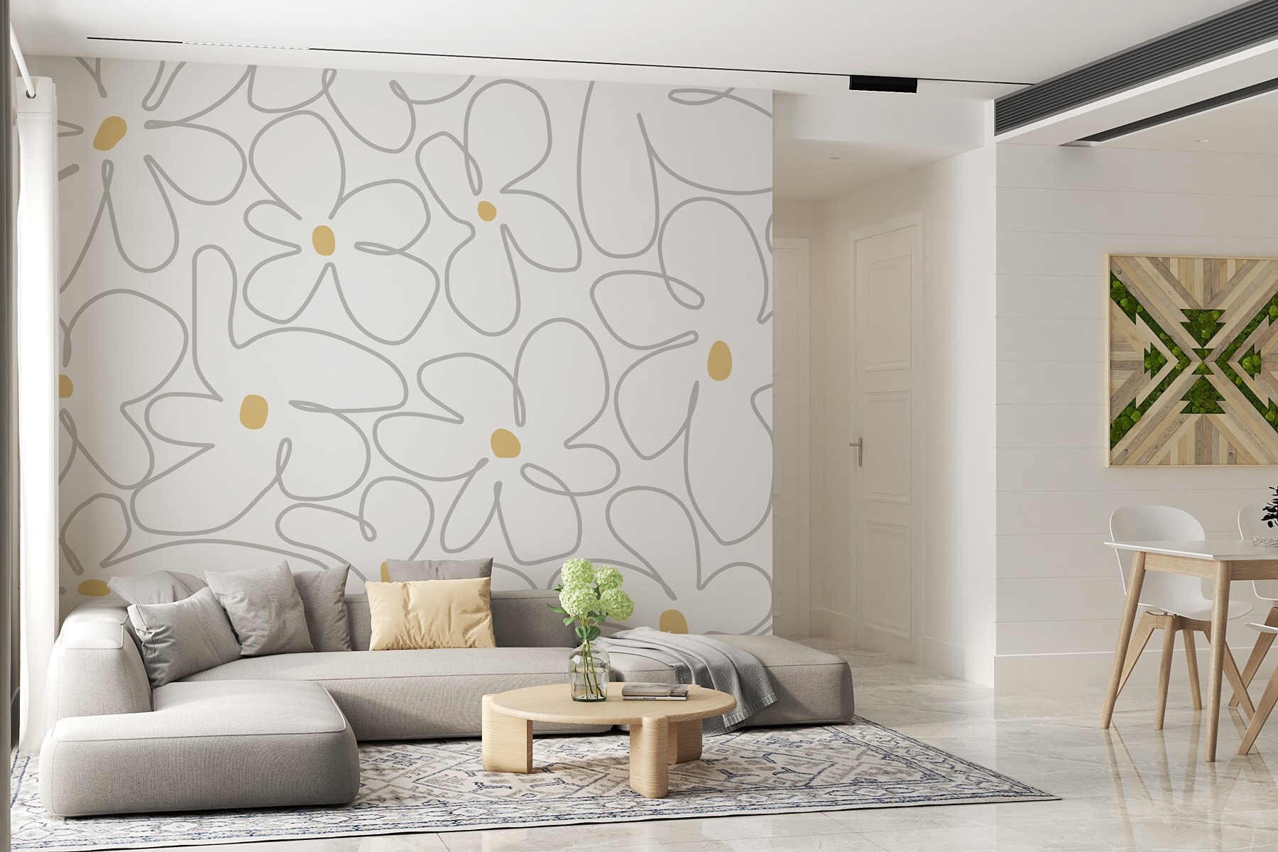 Imagine walking into a room that feels like a sunny garden in full bloom. This wall mural, with its playful pattern of flowers on a crisp white backdrop, does just that. It effortlessly brightens up any space, creating a cheerful vibe that’ll make you smile every time you catch a glimpse. Picture someone sipping coffee, surrounded by this floral delight, feeling their stress melt away. It’s like a hug for your walls—refreshing and inviting. Perfect for a cozy living room or a lovely bedroom, this mural brings a touch of whimsy and warmth, welcoming everyone who enters. Plus, who wouldn’t want to feel like they’ve stepped into their own little floral wonderland?
