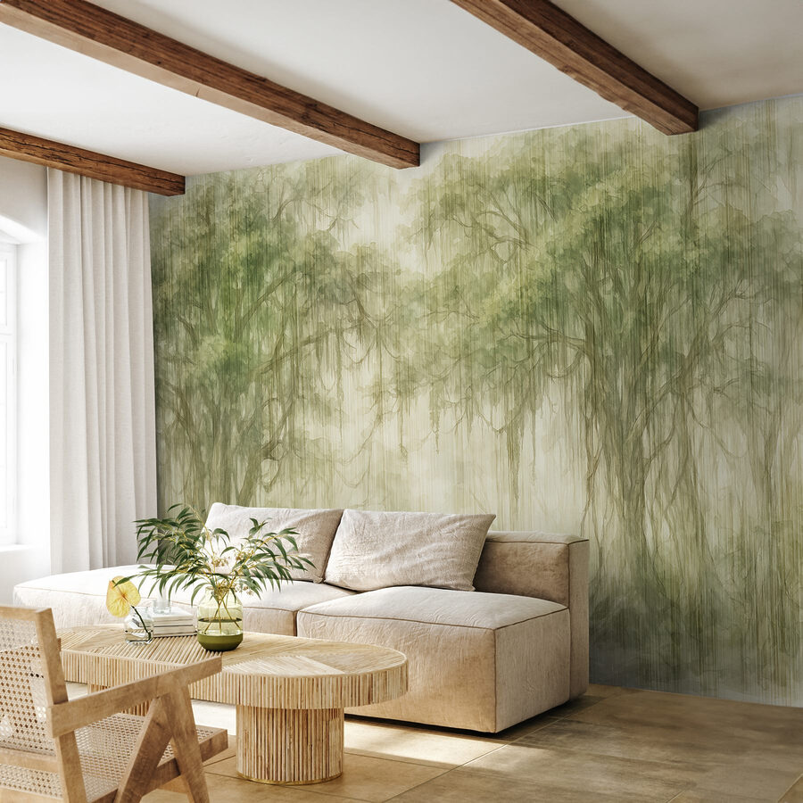 Transform your space into a serene escape with this enchanting mural of trees in a foggy forest. Picture waking up to the gentle whispers of nature every morning, as if the trees have tales to tell. The soft greens and muted tones evoke a dreamy vibe that’s perfect for creating a calm atmosphere. Imagine sipping your morning coffee while gazing at this tranquil scene. Whether it’s in a cozy reading nook or a serene bedroom, this mural invites reflection and peace—ideal for letting your imagination roam. Dive into the mist and let your walls breathe life!