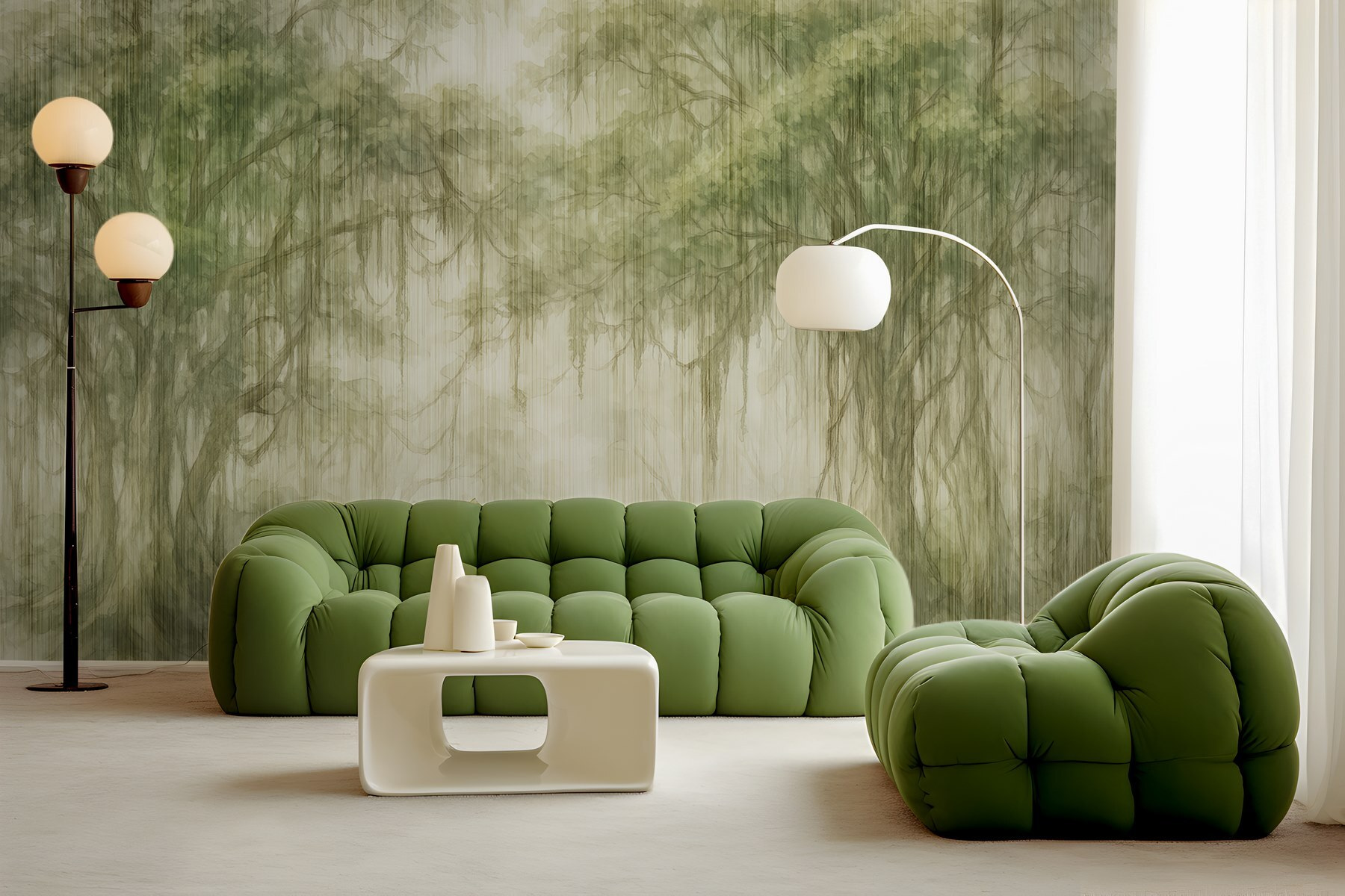 Transform your space into a serene escape with this enchanting mural of trees in a foggy forest. Picture waking up to the gentle whispers of nature every morning, as if the trees have tales to tell. The soft greens and muted tones evoke a dreamy vibe that’s perfect for creating a calm atmosphere. Imagine sipping your morning coffee while gazing at this tranquil scene. Whether it’s in a cozy reading nook or a serene bedroom, this mural invites reflection and peace—ideal for letting your imagination roam. Dive into the mist and let your walls breathe life!