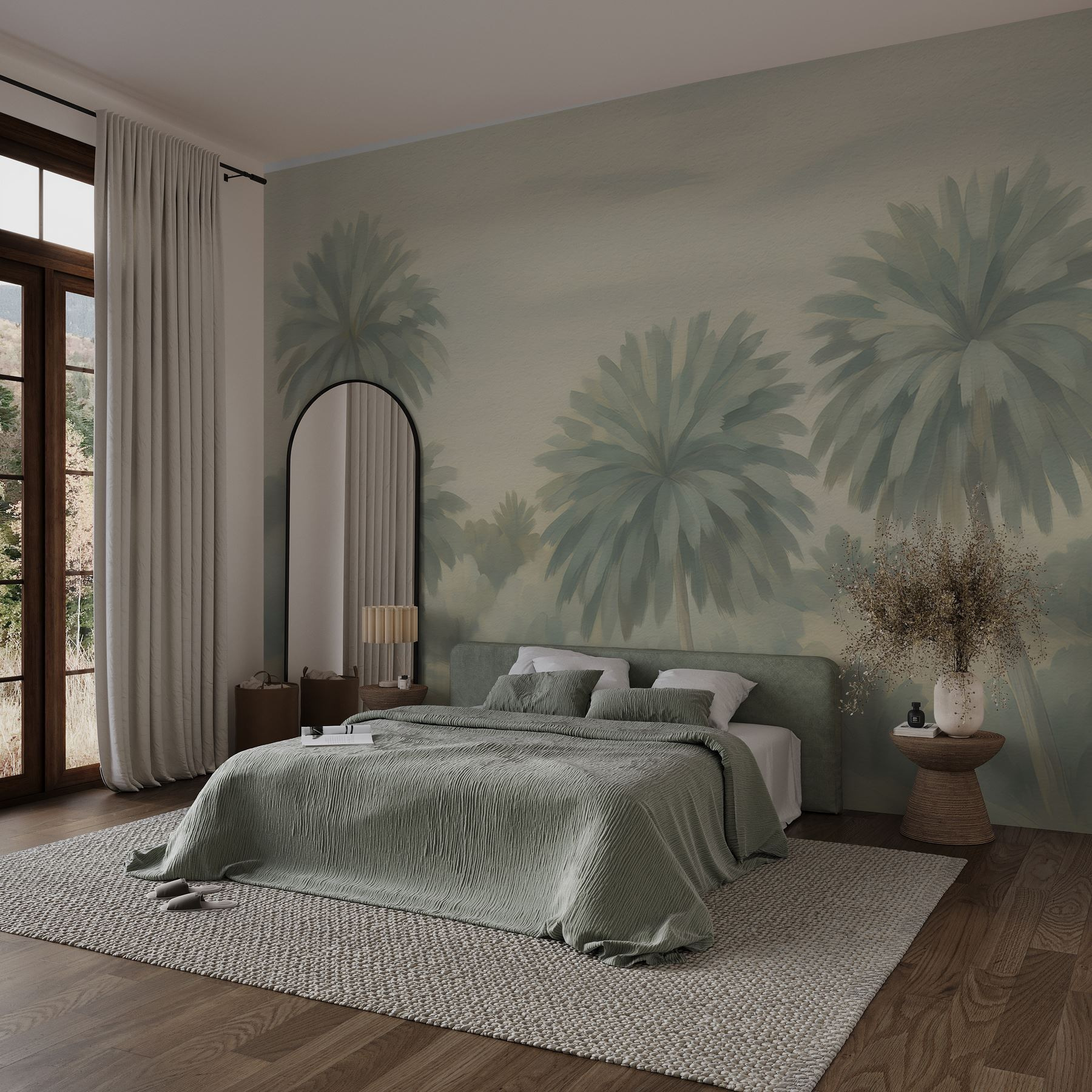 Dive into an oasis of calm with this enchanting wall mural of palm trees. Imagine stepping into a tropical paradise every time you walk into the room. The soft colors and gentle brush strokes create a dreamy backdrop, perfect for daydreaming or relaxing with a good book. It’s like bringing a touch of summer right into your space, even when it’s chilly outside. Can you picture sipping a cool drink while gazing at this serene view? Ideal for living rooms or cozy nooks, this mural invites a laid-back vibe that’s hard to resist. Transform your walls into a breath of fresh air!