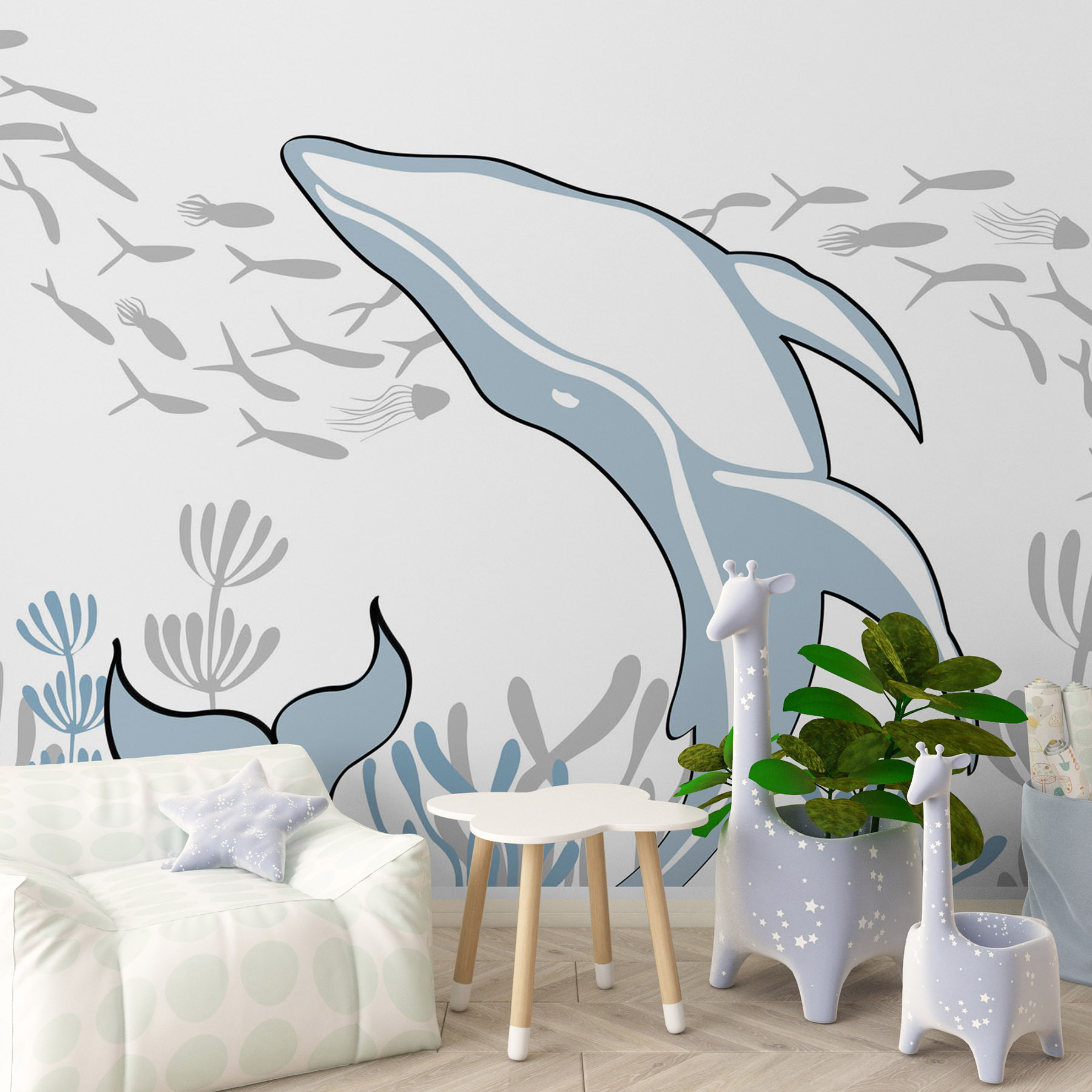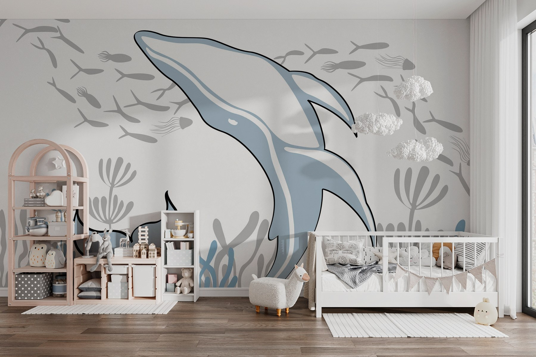 Transform any room into a serene ocean escape with this captivating wall mural. Picture dolphins gracefully swimming among schools of fish, bringing a touch of the seaside straight to your walls. It’s not just a mural—it’s like having a little piece of the ocean right at home. Imagine relaxing in your space, feeling that gentle ocean vibe wash over you. Perfect for productively daydreaming, or perhaps even planning that beach vacation you’ve been putting off. Dive into a world where every glance invites a smile, blurring the lines between indoor comfort and oceanic adventure.
