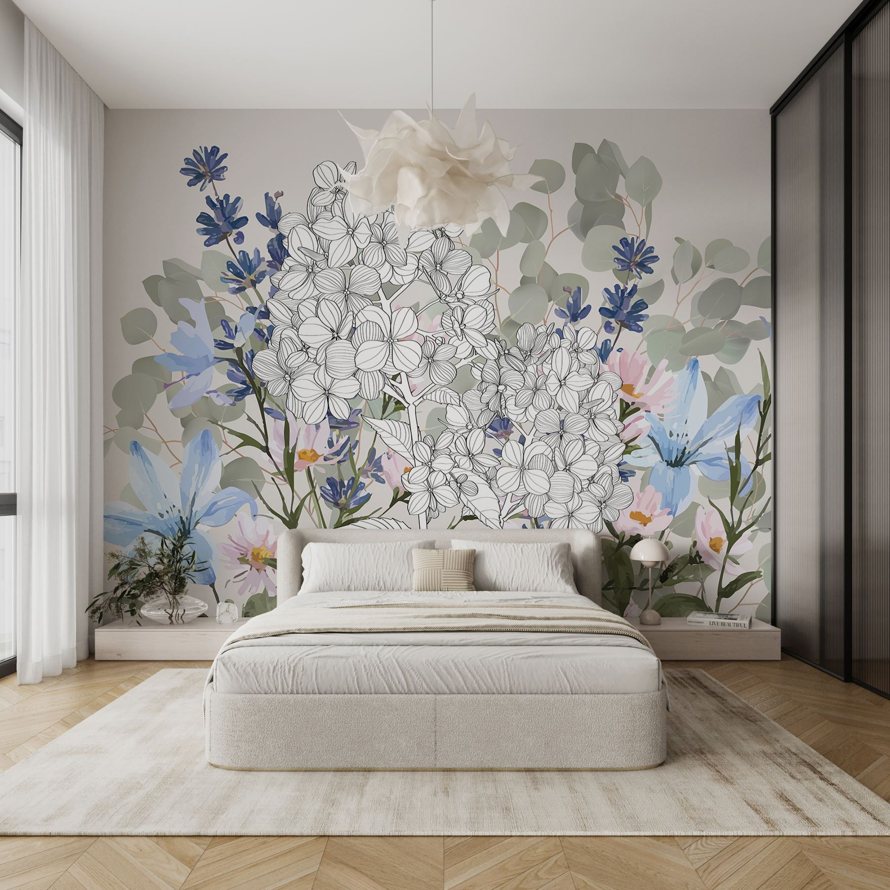 Transform your space into a serene getaway with this wall mural featuring delicate blooms in soft pastel hues. Imagine walking into a room where gentle shades of blue, pink, and green envelop you like a warm embrace. It’s like bringing a garden indoors, minus the watering can and pesky bees. Perfect for a cozy reading nook or a bright kitchen, this mural invites warmth and tranquility. Friends will swear they’ve stumbled into a sunlit meadow. It’s not just decor; it’s an experience—one that whispers calm every day. So, why not let these floral beauties brighten up the walls?