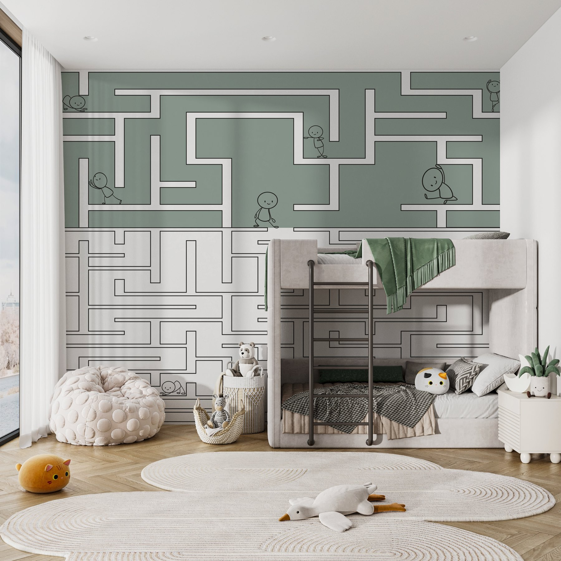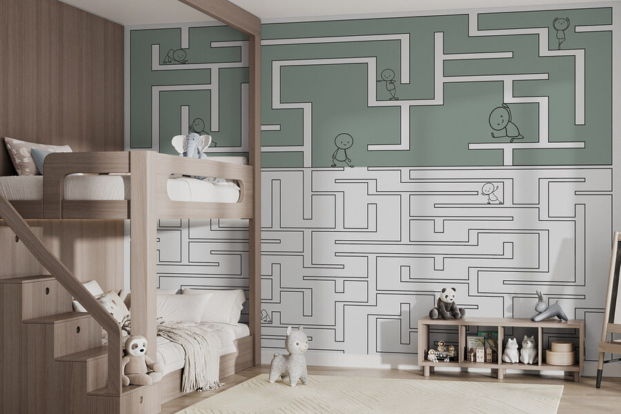 Transform any child’s space with this playful wall mural! Picture little cartoon figures navigating a maze, bringing both charm and whimsy to the room. It’s like having a game right on the wall—who wouldn’t want a friendly challenge staring back at them? Imagine the laughter as kids pretend to help their new maze buddies find the way out. The soft colors create a soothing atmosphere, perfect for playtime or downtime. It’s a decor choice that sparks imagination, making every glance at the wall feel like a mini adventure. Perfect for igniting creativity!