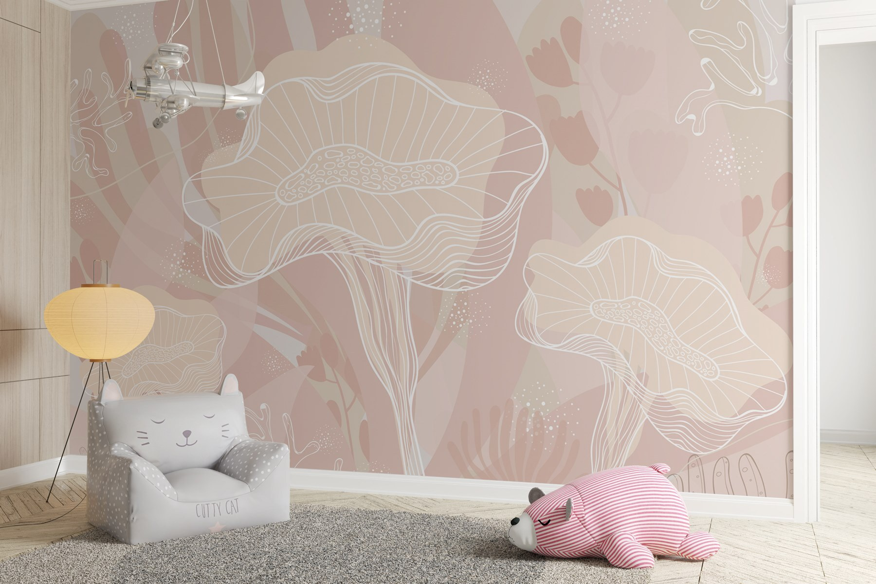 Transform your space with the enchanting “Wall Murals White Outline of Mushrooms.” This delightful design features whimsical mushroom outlines against soft, earthy tones, creating a calming yet playful vibe. Imagine stepping into a room where every glance reveals a tiny adventure—mushrooms peeking out like old friends ready to share secrets.