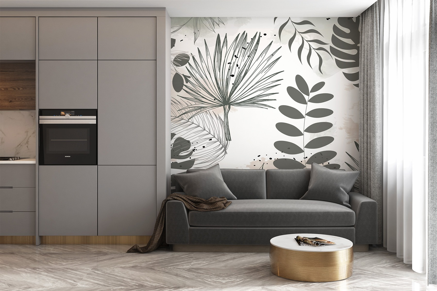 Transform any room into a serene retreat with this nature-inspired wall mural. Imagine stepping into a lush botanical garden, right from your living space. The elegant outlines of palm leaves and delicate foliage dance across a soft backdrop, evoking a fresh, airy vibe. It’s like a breath of fresh air, minus the bugs! Perfect for a cozy reading nook or behind your bed as a peaceful focal point, this mural adds a splash of life and whimsy. Friends might just ask if you’ve taken up gardening—what a compliment! Bring the outdoors in and watch your space bloom with personality.