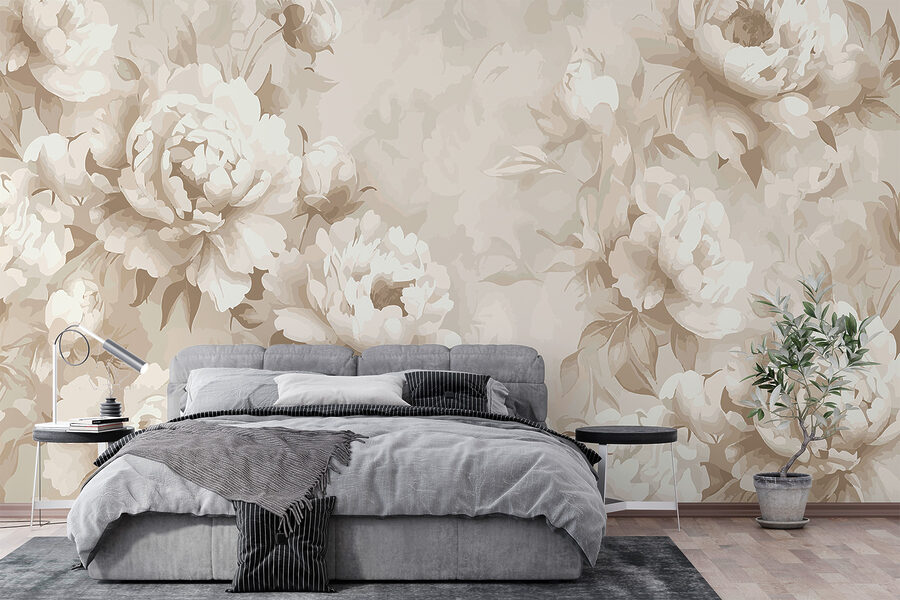 Transform your space with this elegant monochrome floral mural, a design that whispers sophistication without shouting for attention. The delicate blooms, all soft whites and gentle creams, swirl across the wall like a serene garden on a lazy Sunday morning. Imagine curling up with a book, losing track of time as the floral patterns coax calm into your day.