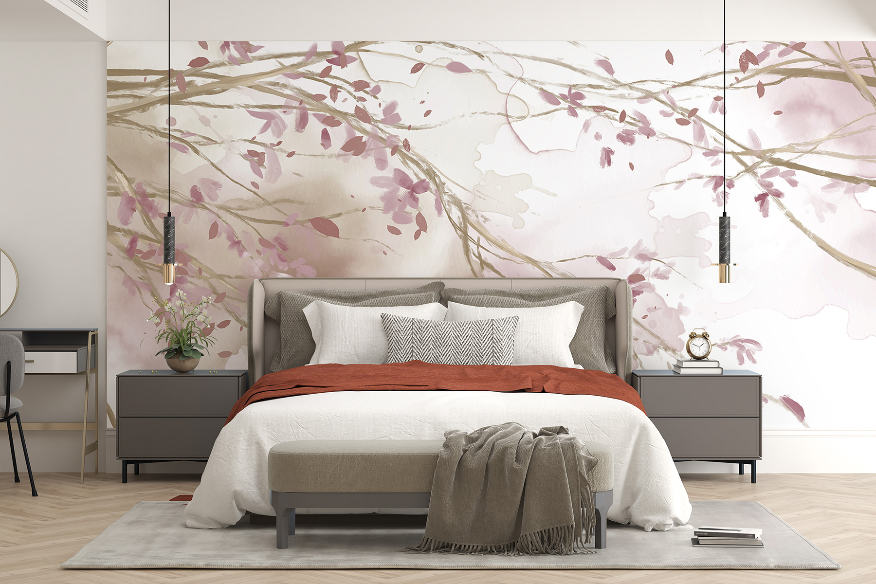 Transform any space with this stunning watercolor mural featuring delicate tree branches adorned with soft pink flowers. It’s like bringing a gentle spring breeze right into your home—all year round! Imagine waking up to this beauty, sipping your morning coffee while soaking in the floral vibes. Perfect for cozy living rooms or serene bedrooms, this mural invites warmth and tranquility. Plus, it gives the illusion of a garden view, even if you’re stuck in a studio apartment. Who wouldn’t want that kind of charm? Let nature’s elegance wash over your walls!