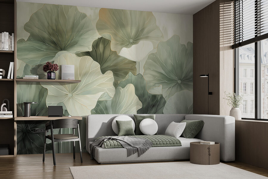 Transform any space into a serene oasis with this stunning mural featuring a group of leaves set against a gentle light background. It’s like inviting nature right into your home without the pesky bugs! Imagine waking up to this lush greenery every day—feels like a mini-vacation, doesn’t it? The soft colors blend effortlessly with various decor styles, adding just the right touch of calm sophistication. Perfect for a cozy reading nook or that wall that’s been begging for some personality. Trust us, your walls will thank you for the upgrade!