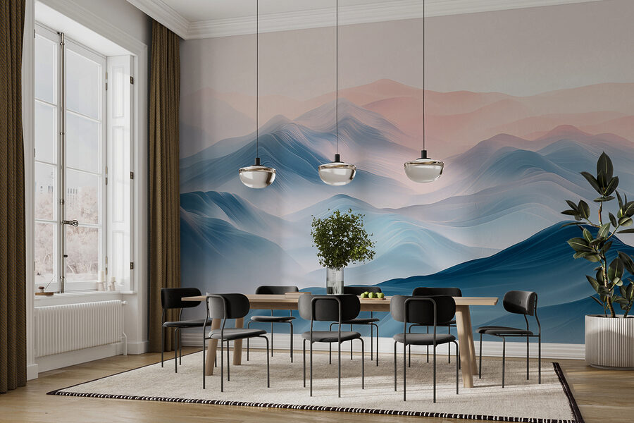 Transform your walls with this mesmerizing “Landscape of Mountains with Fog” mural. Imagine waking up to soft, swirling blues and gentle pinks, like a dreamy morning mist wrapping around distant peaks. It’s the kind of view that whispers calm and invites daydreams. Whether it’s for a cozy reading nook or an inspiring office space, this mural brings a sense of serenity—perfect for those moments when life feels a bit too hectic. Friends will be curious if you’ve actually got a mountain view! It’s easy to get lost in the layers of color, feeling like you’re stepping into a tranquil escape right from the comfort of home.